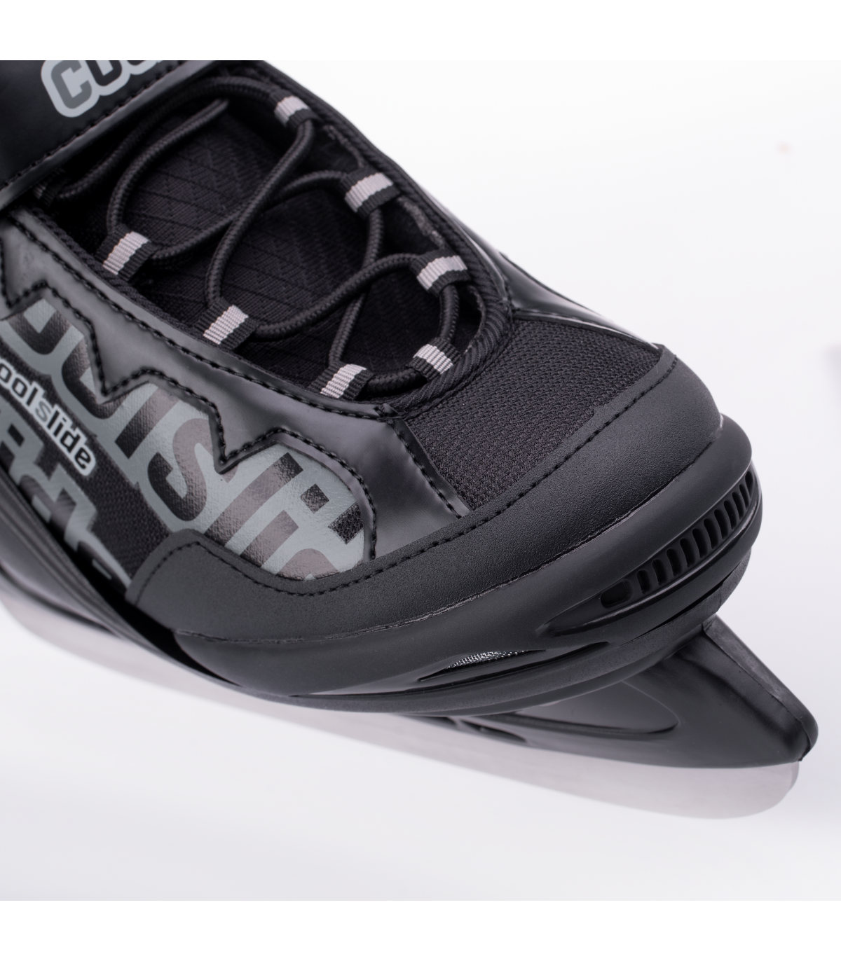 ICE SKATES SIZE: 37-46 MATERIAL COMPOSITION: SHELL: PE UPPER / BOOT: MESH LINER: VELOUR FRAME: PE BLADE: STAINLESS BLADE BLADE COVER: PP SPECIFICATION: - WATERPROOF - SEMI-SOFT - STAINLESS STEEL