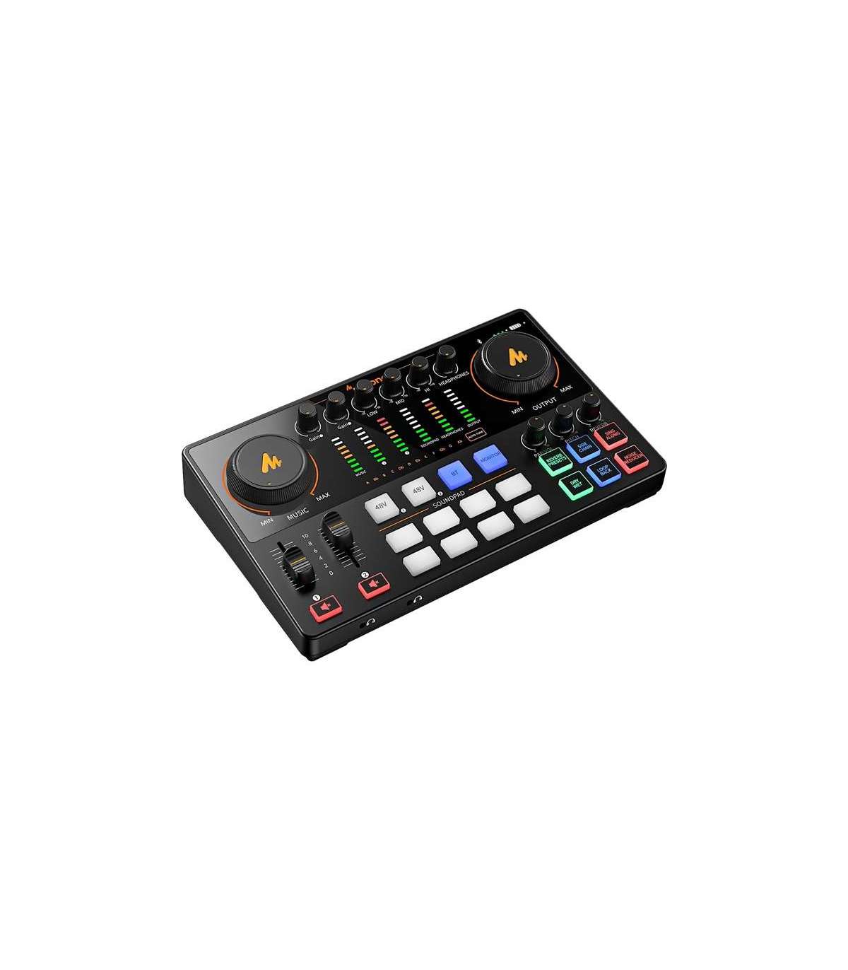 There are control knobs for microphone volume, voice tone (pitch), effect level, as well as quick access to reverb presets and Auto-Tune functions. A panel with 8 audio buttons allows you to add your own effects or use preset ones, such as applause or laughter - useful during broadcasts or recordings.