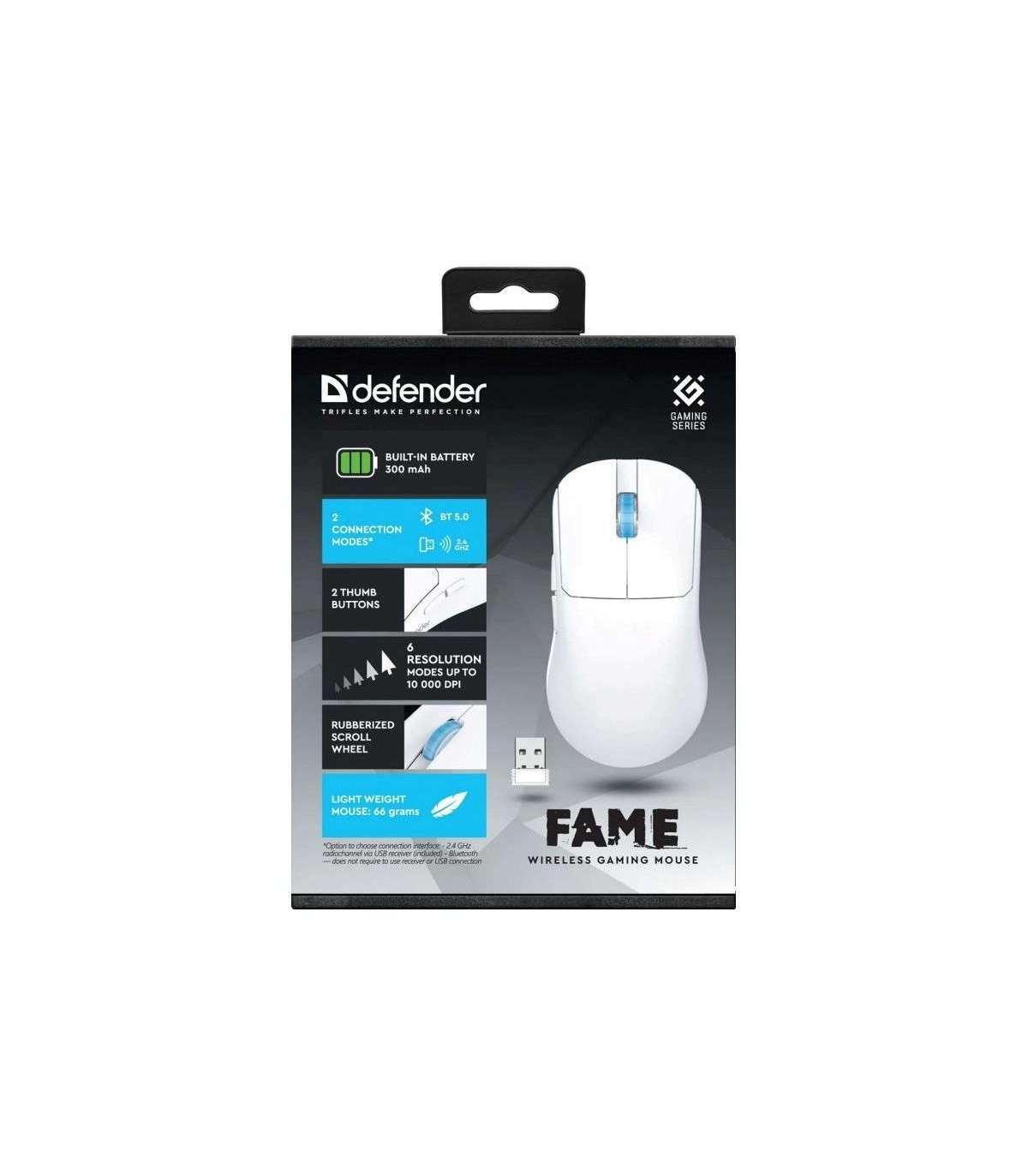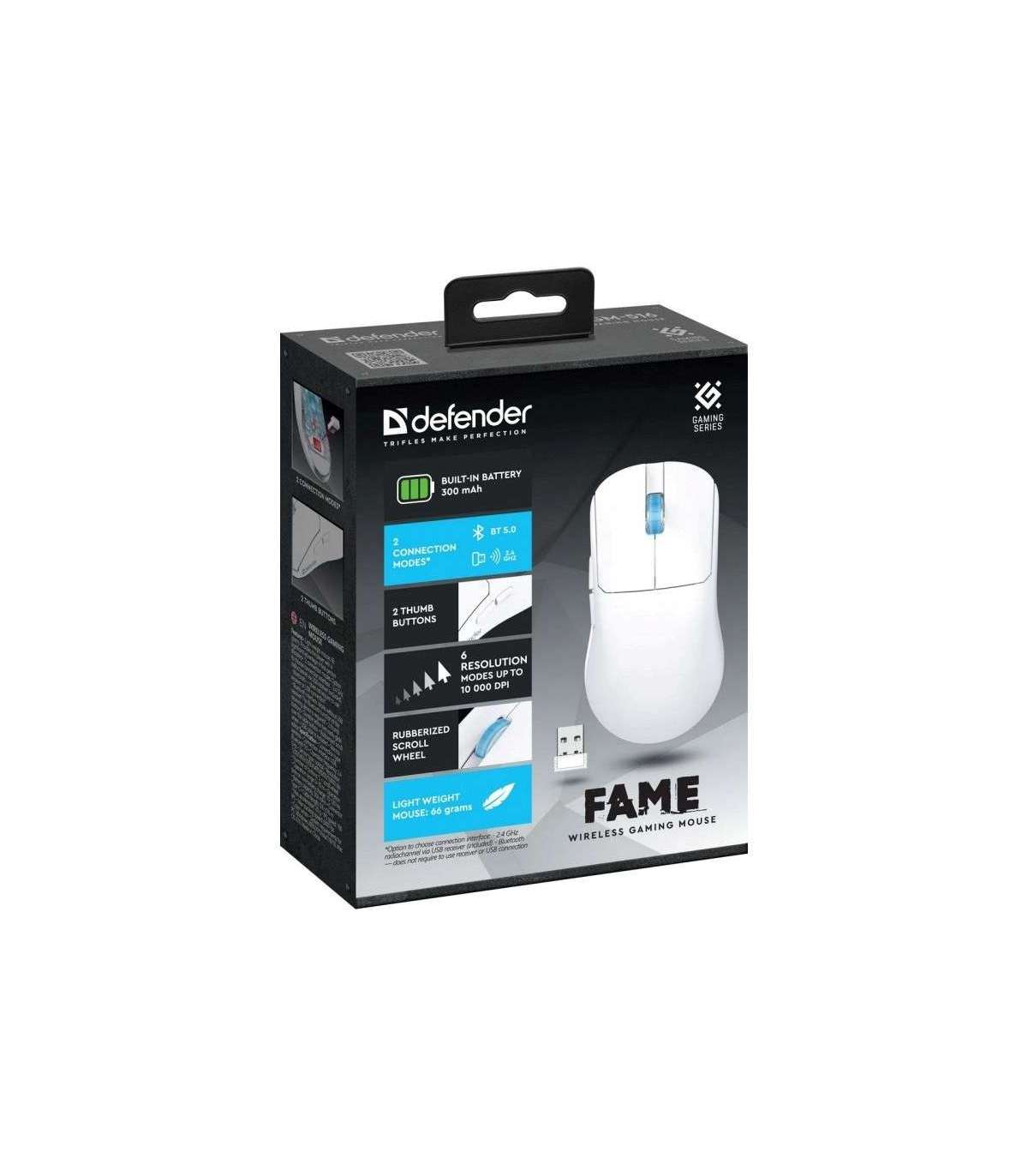 WIRELESS MOUSE DEFENDER FAME GM-516 RF+BT 10000DPI 6P WHITE