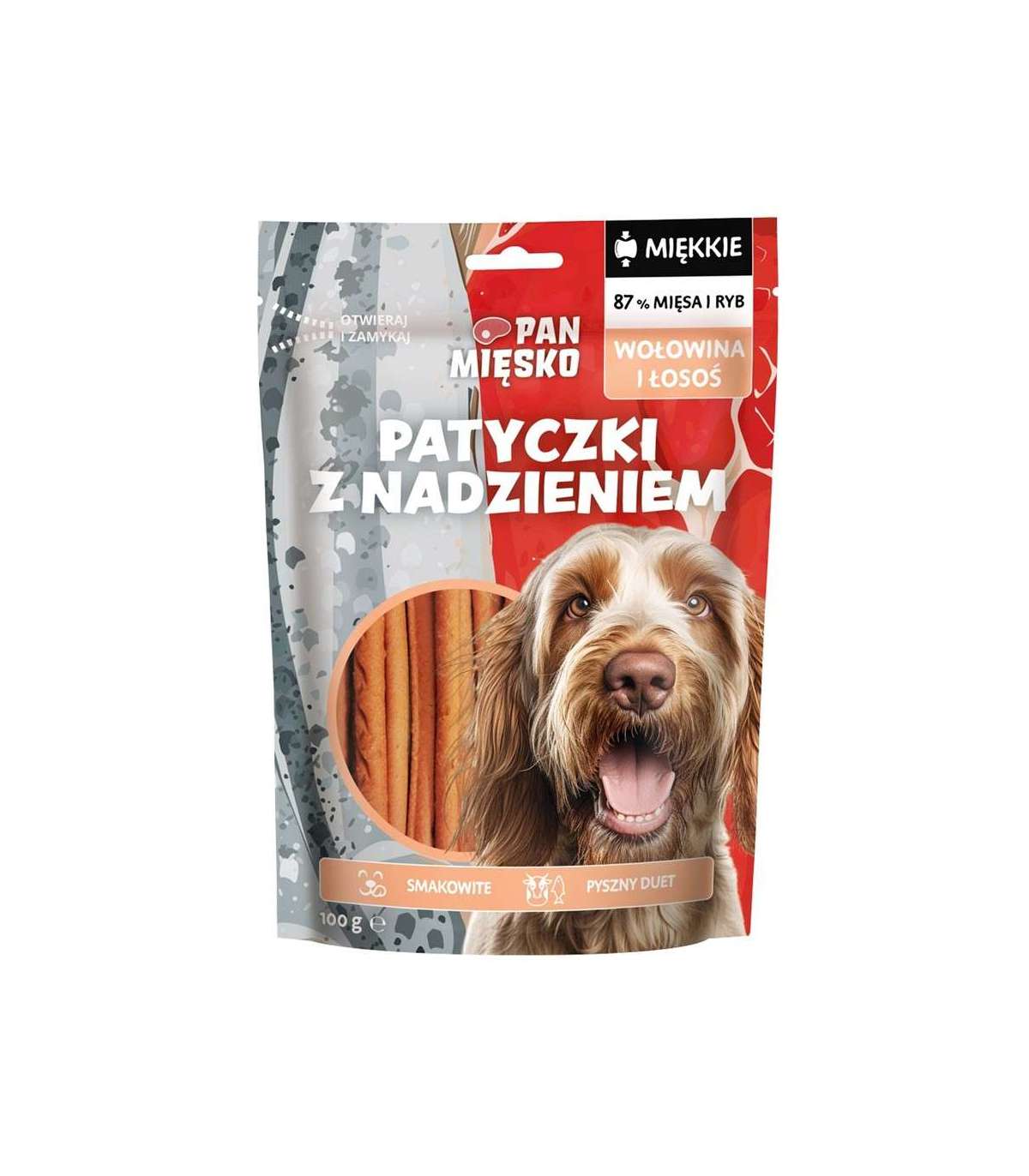 PAN MIĘSKO Sticks with beef and salmon filling - dog treat - 100g