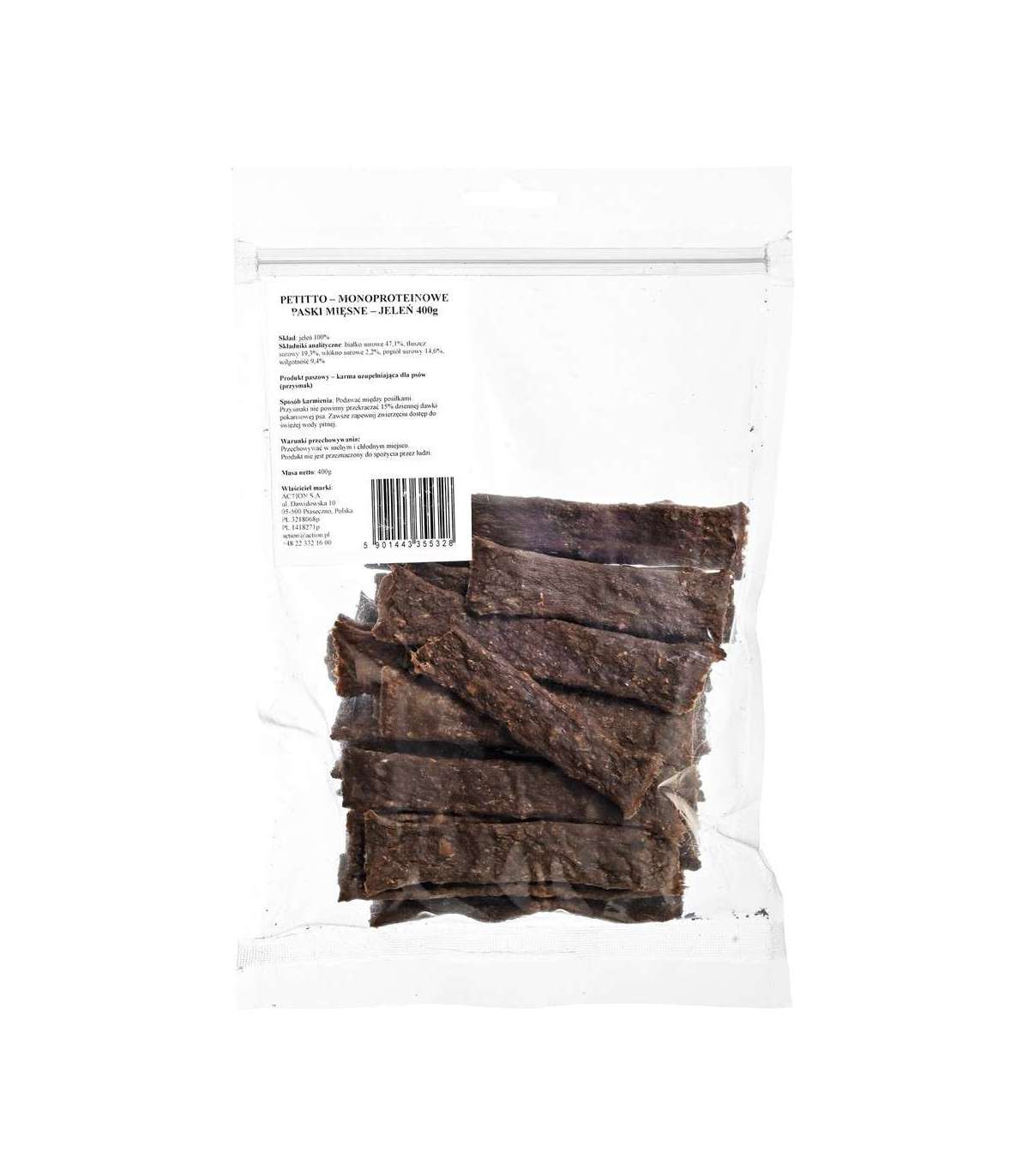 PETITTO Monoprotein meat strips Deer - dog treat - 400g