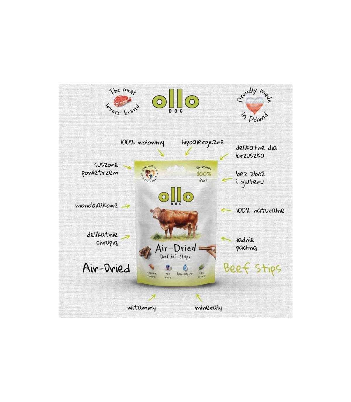 OLLO Air-Dried Beef strips - dog treat - 80g