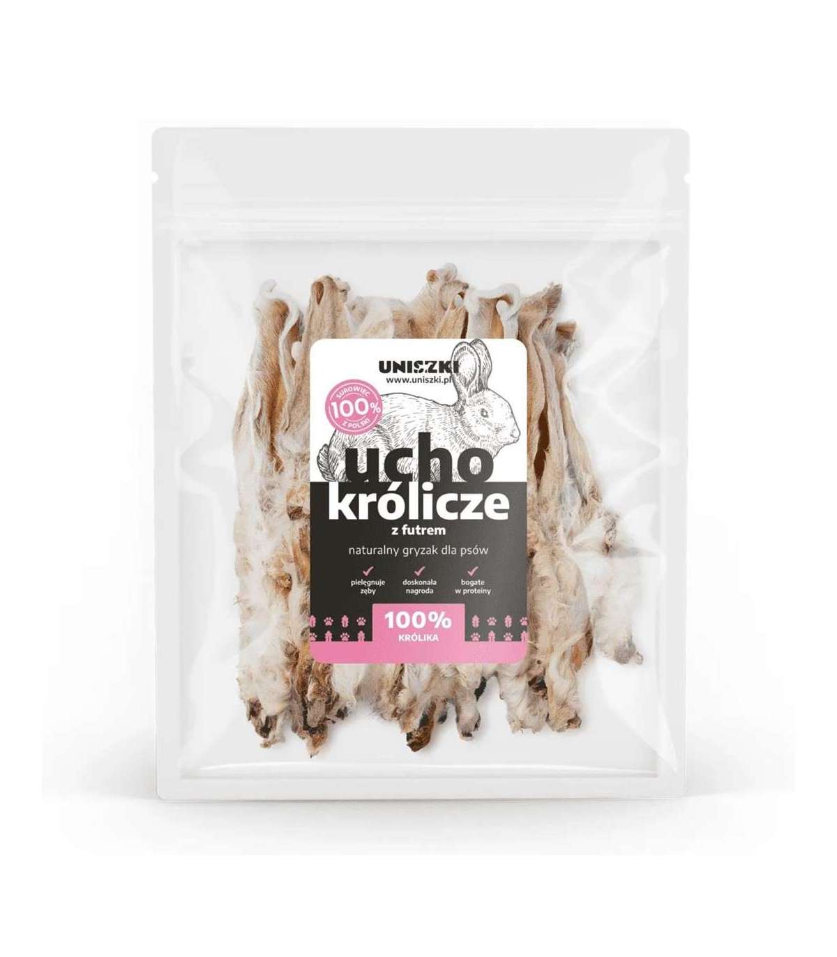 UNISZKI Rabbit ear with fur - treat for dogs - 20 pieces