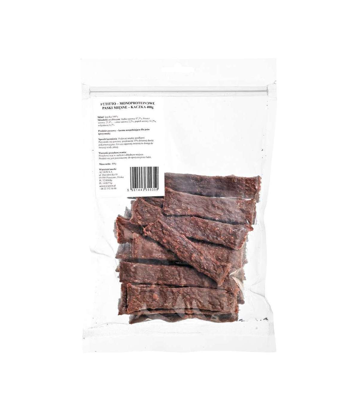 PETITTO Monoprotein meat strips Duck - dog treat - 400g