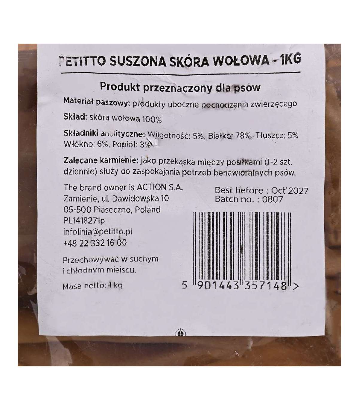 PETITTO Suszona skóra wołowa -1kg