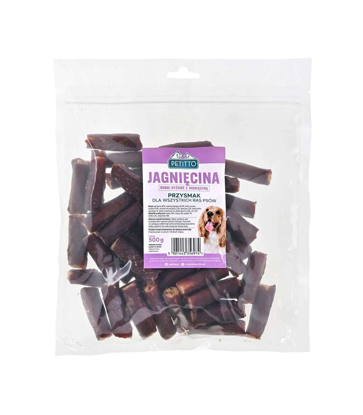 PETITTO Rurki ryżowe z jagnięciną dla psa 500g