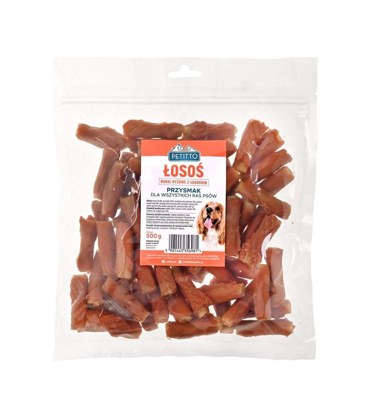 PETITTO Rurki ryżowe z łososiem dla psa 500g