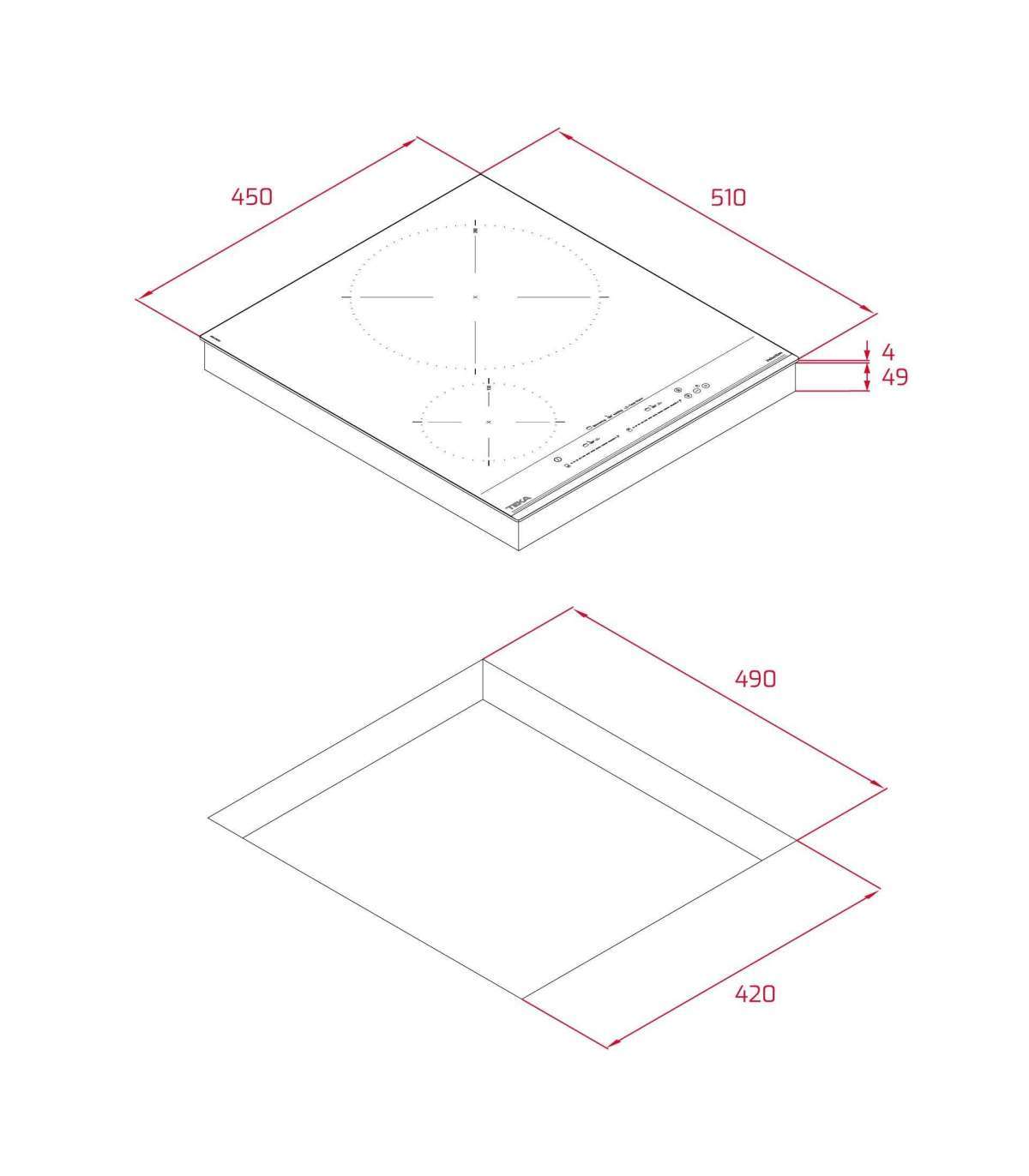 - Hob width, mm