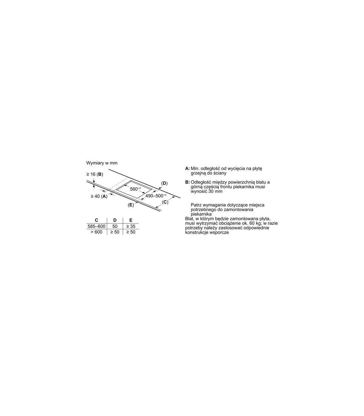 Hob width size