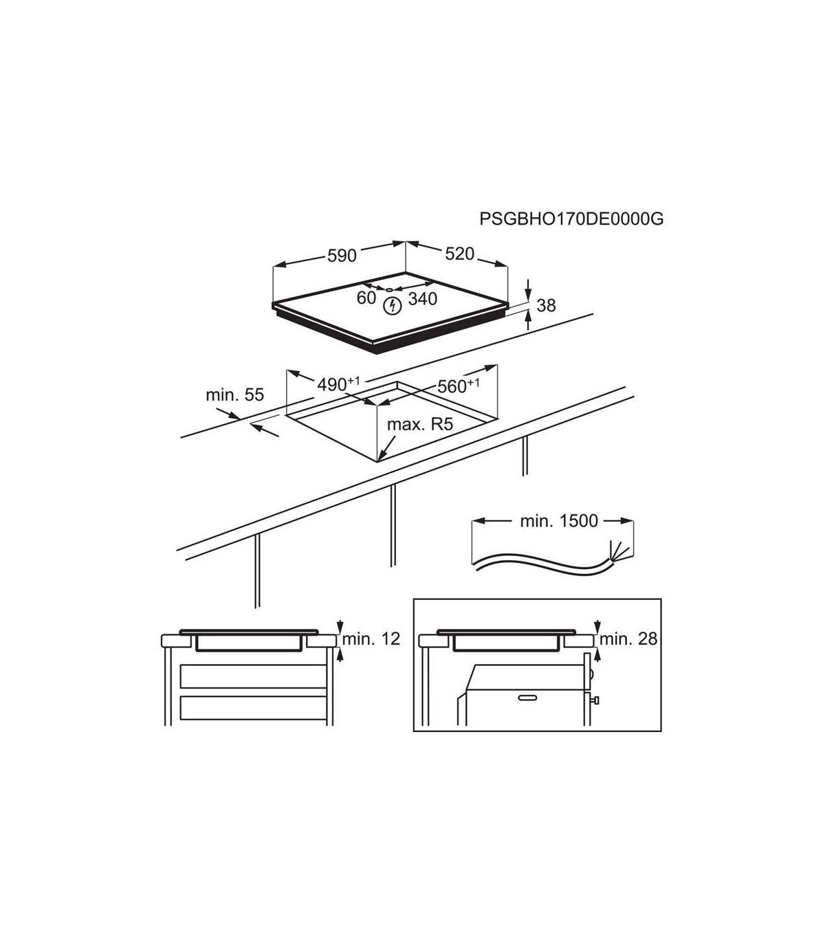 Hob width size