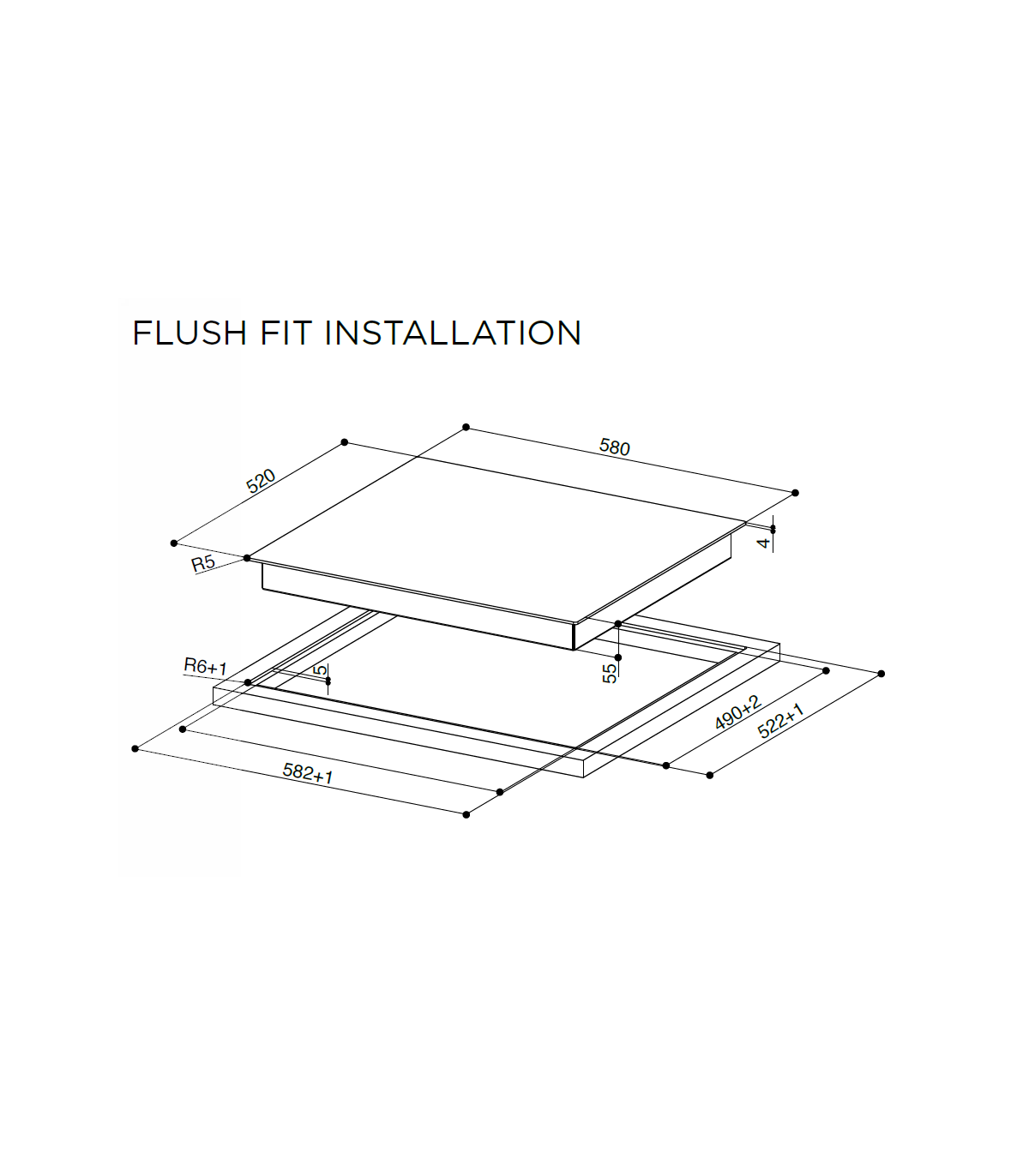 Pliidiplaat on töötasapinna sisse uputatav! Raadius 5 mm.