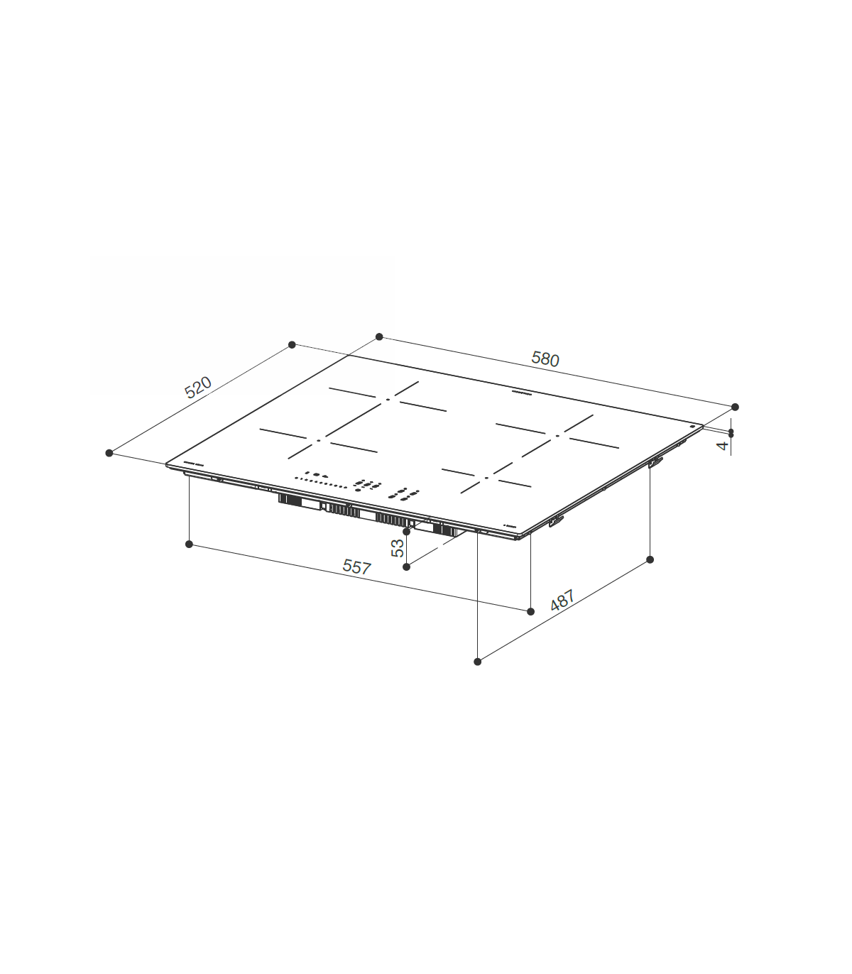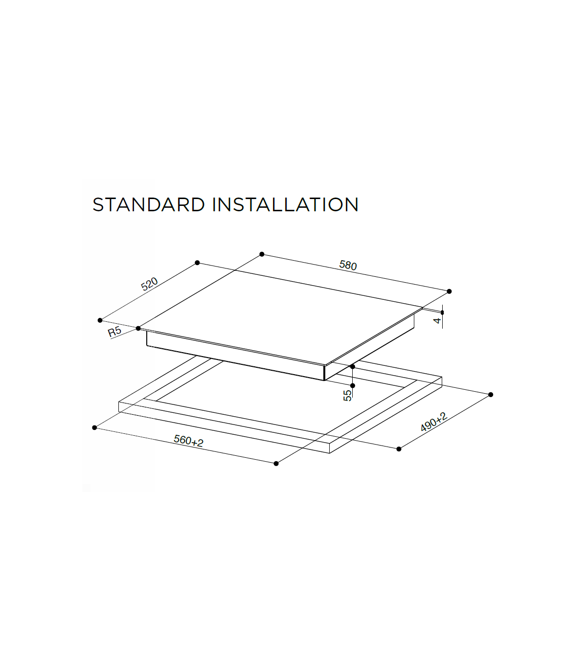 Pliidiplaat on töötasapinna sisse uputatav! Raadius 5 mm.