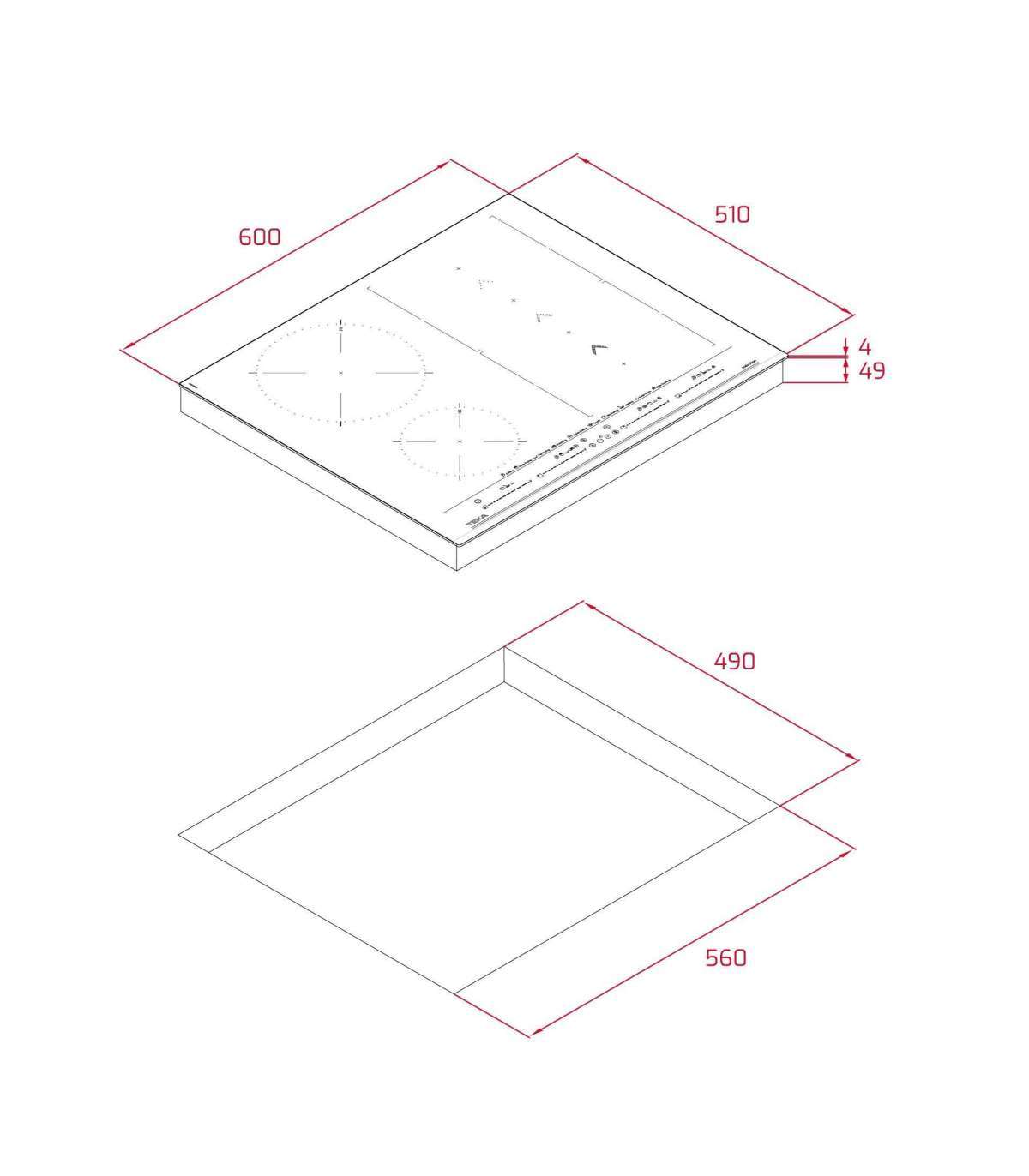 Keedualade mõõdud: 4 x Ø 262,5 X 195 mm ja 2 x Flex keeduala. FlexiZone: 235 x 378 mm.