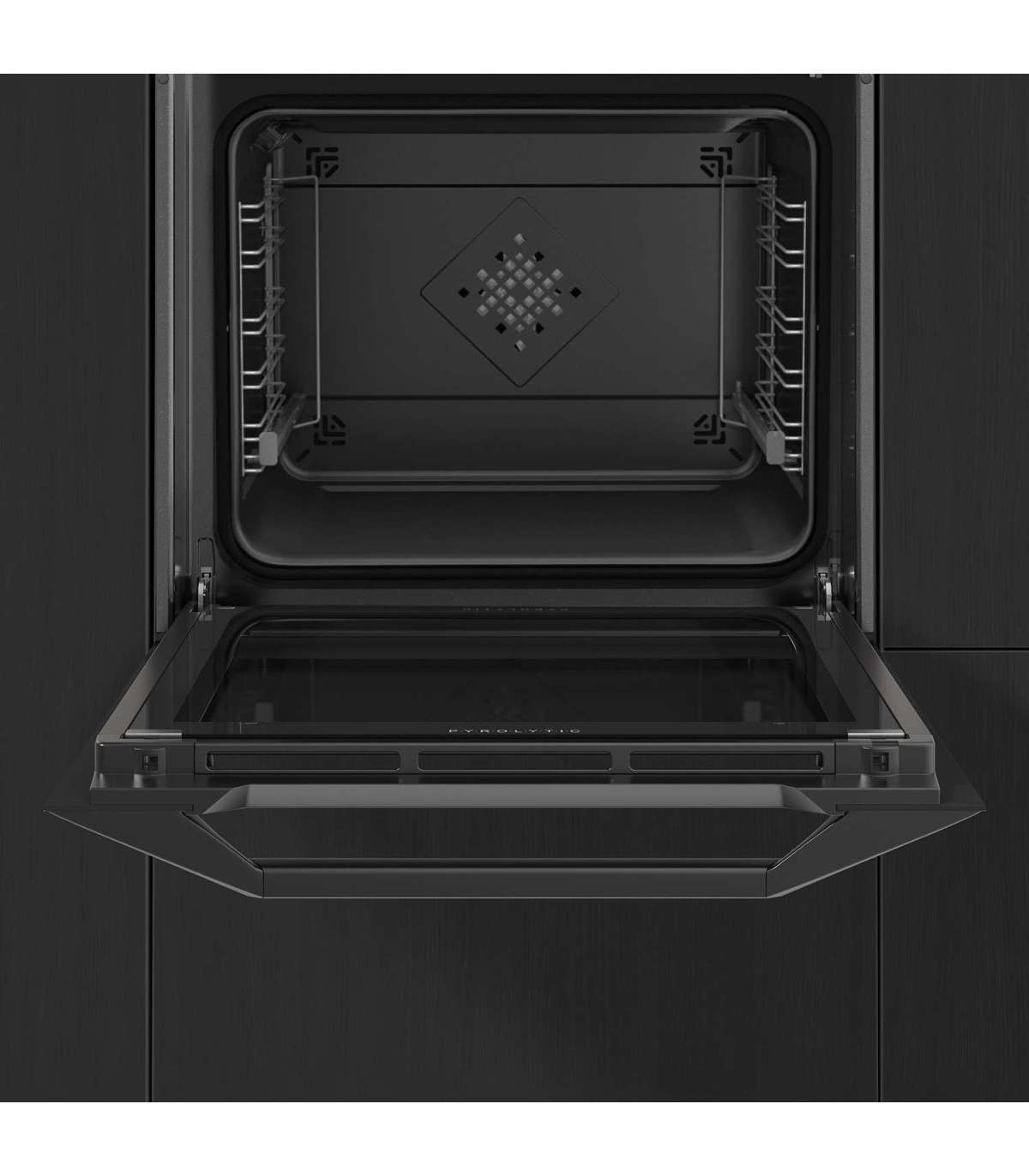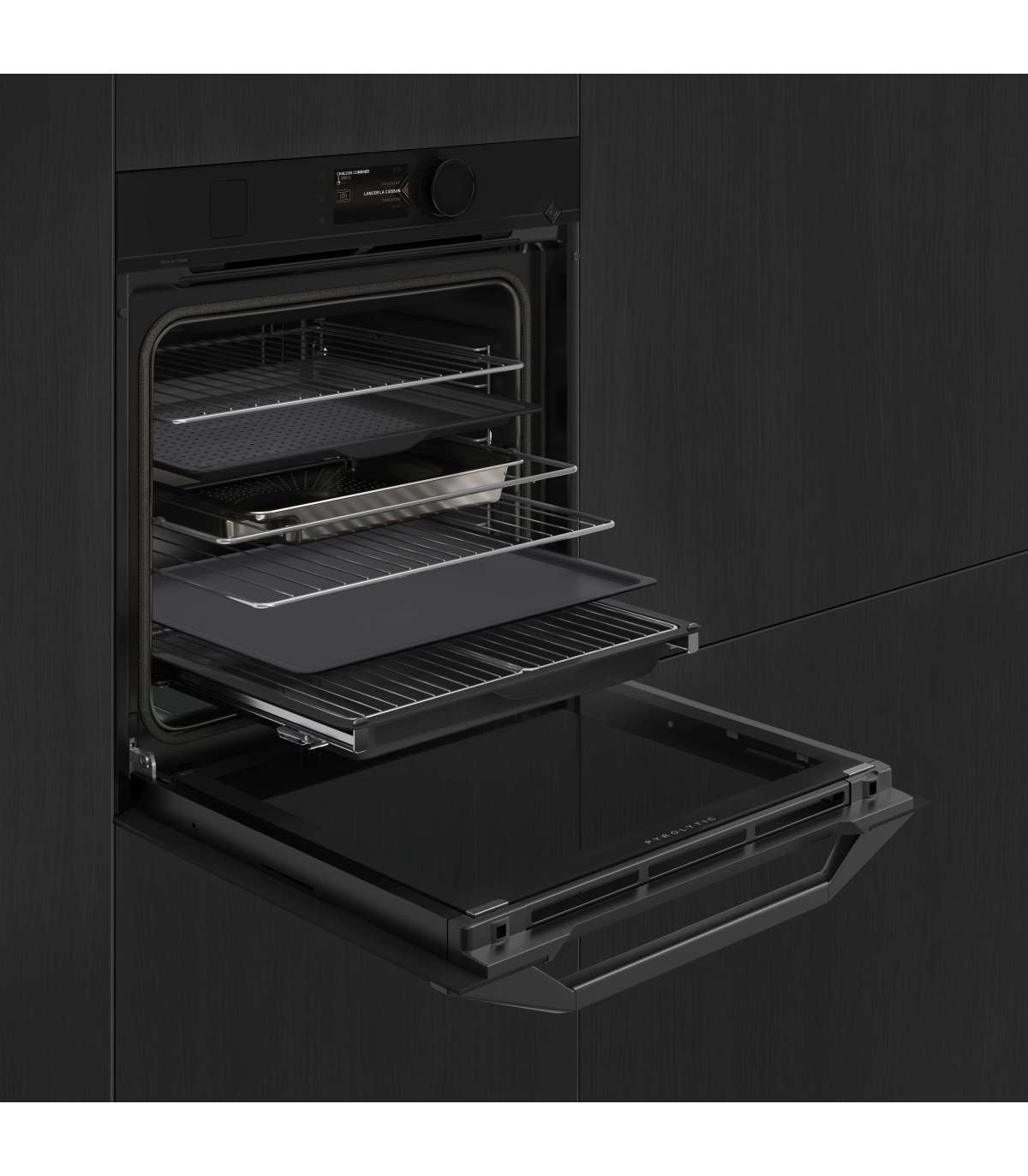 Jahe pehmelt sulguv uks tagab muretu ahju käsitluse! 4-kordse tugevdatud klaasiga uks püsib jahe ka kõige kõrgemate temperatuuride juures, isegi pürolüüspuhastuse vältel. Pehmelt sulguvad uksehinged tagavad, et uks sulgub alati vaikselt.