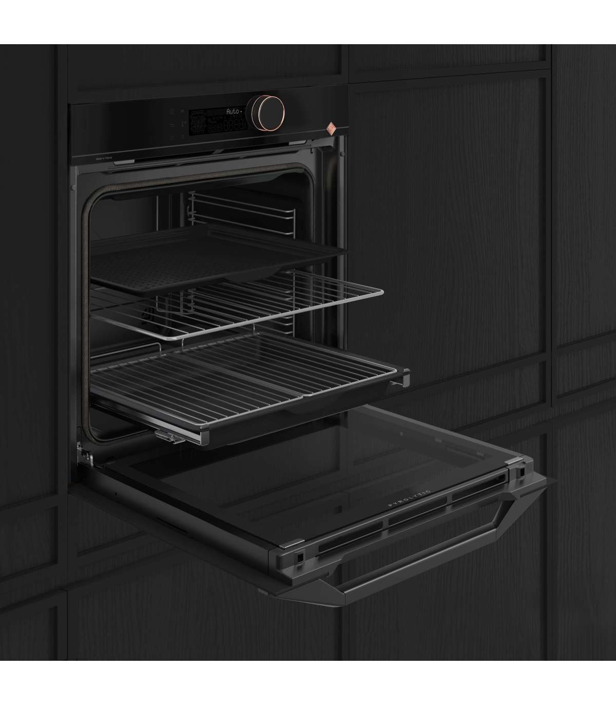 Jahe pehmelt sulguv uks tagab muretu ahju käsitluse! 4-kordse tugevdatud klaasiga uks püsib jahe ka kõige kõrgemate temperatuuride juures, isegi pürolüüspuhastuse vältel. Pehmelt sulguvad uksehinged tagavad, et uks sulgub alati vaikselt.