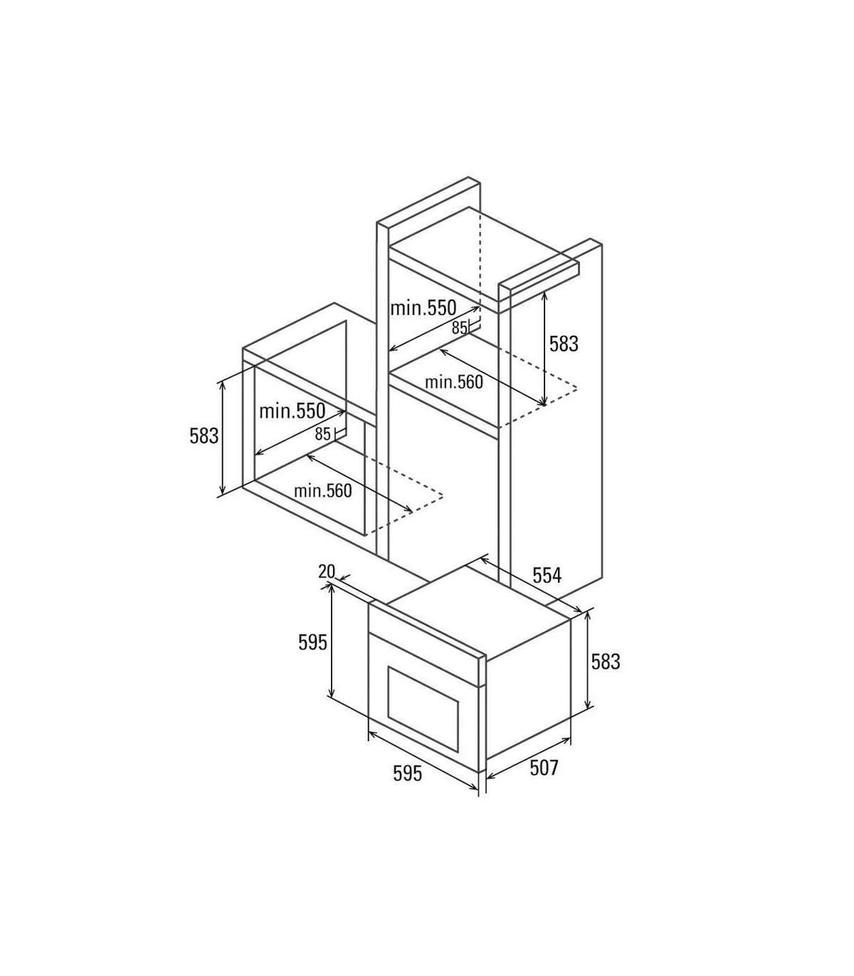 Display cooking programmer with temperature and times. Panoramic easy-to-clean full glass door. Double glazed cool door with tangential ventilation
