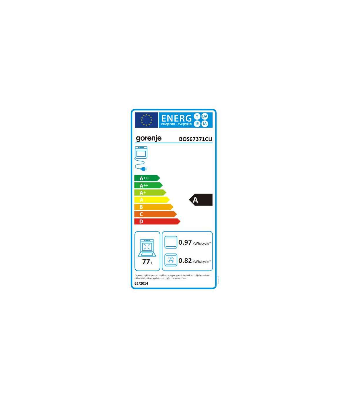 Gorenje Oven BOS67371CLI 77 L Multifunctional EcoClean Mechanical control Steam function Height 59.5 cm