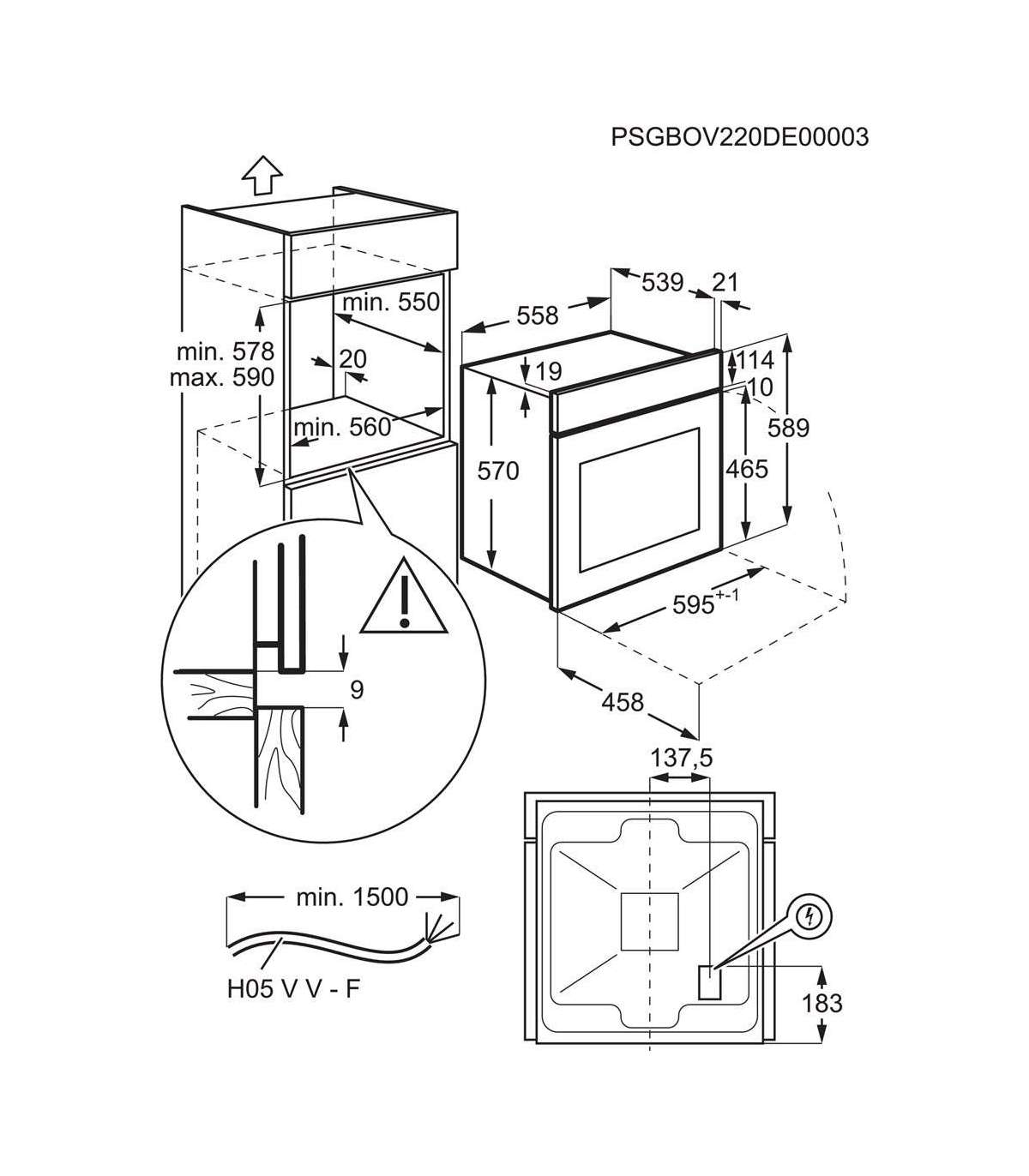 - Oven installation compartment height