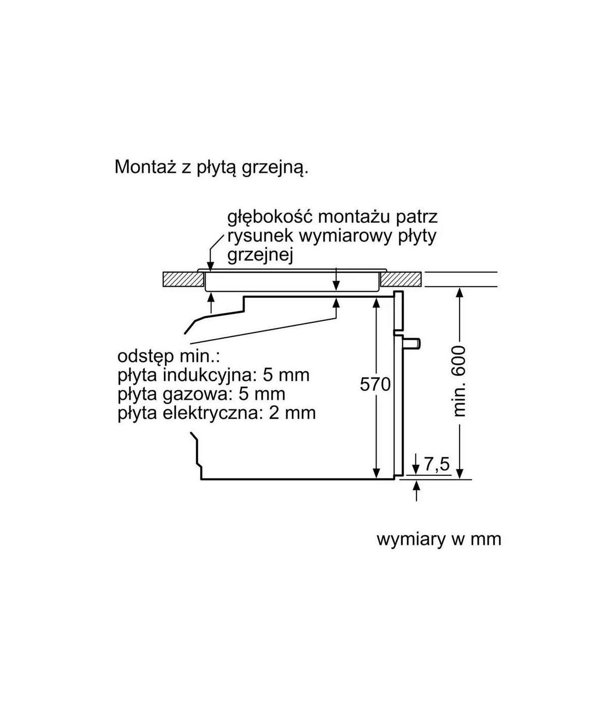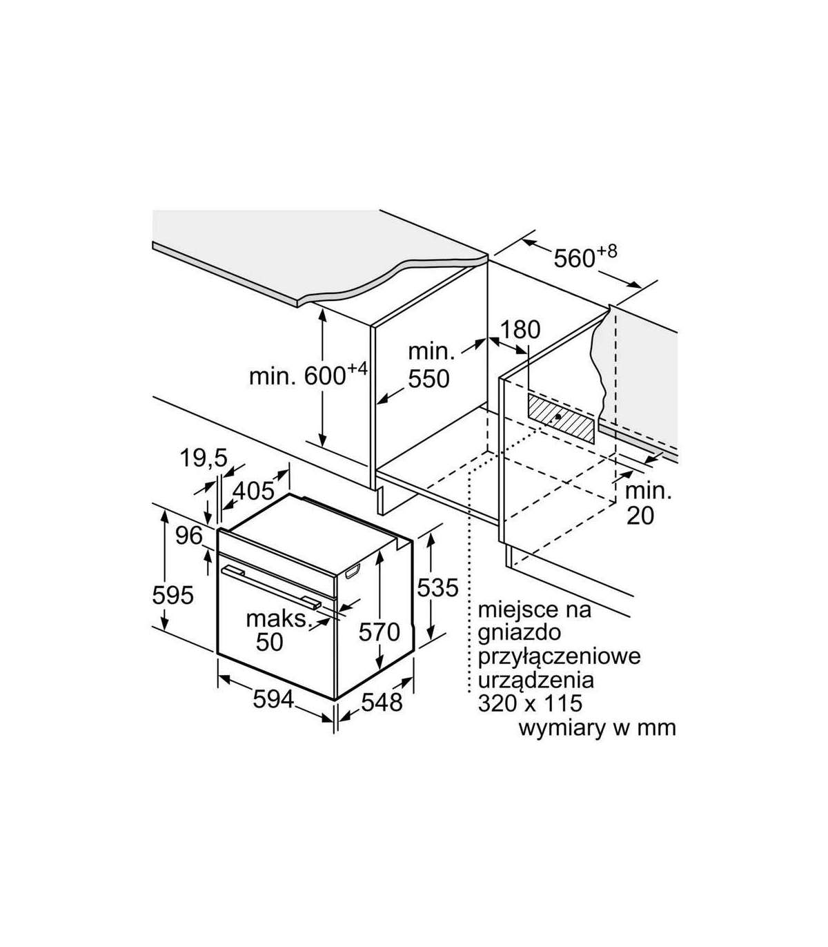 - Installation compartment width (min)