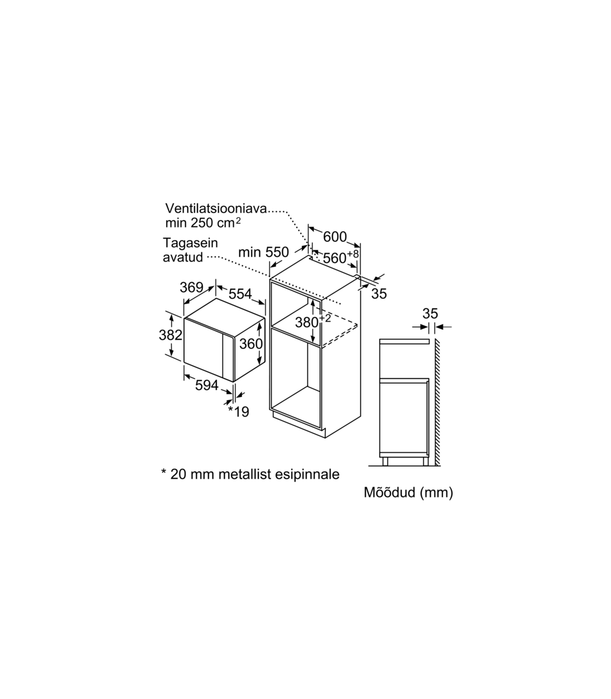 Max võimsus 900 W; 5 mikrolaineahju võimsusvalikut: 90 W, 180 W, 360 W, 600 W, 900