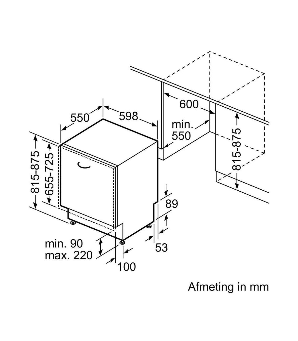 - Installation compartment height (min)