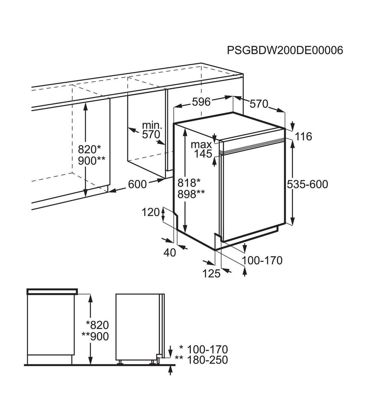 - Installation compartment height (min)