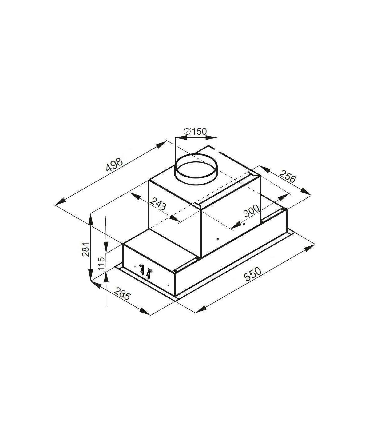 Täisintegreeritav õhupuhastaja paigaldatakse ülemise köögikapi sisse.
