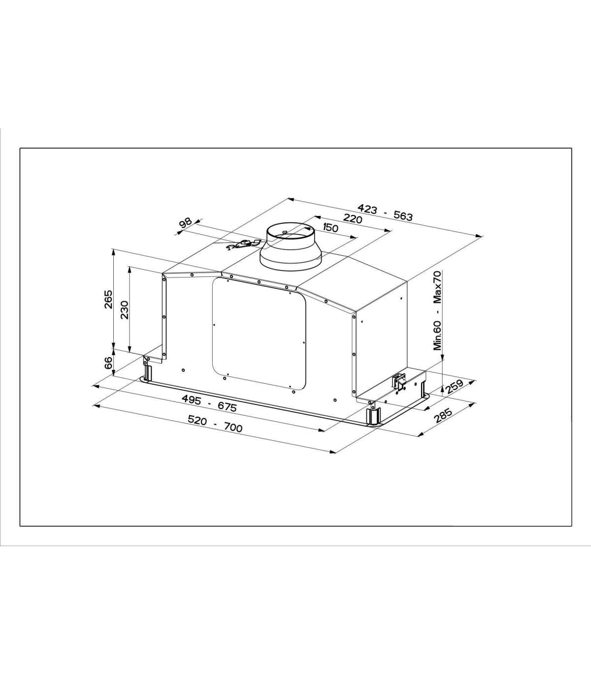 Paigaldamine: Vajalik minimaalne kaugus elektrilistest pliidiplaatidest peab olema vähemalt 50 cm ning gaasi- ja segapliidiplaatidest 65 cm. Õhupuhastajaga on kaasas üleminek 150-120 mm.