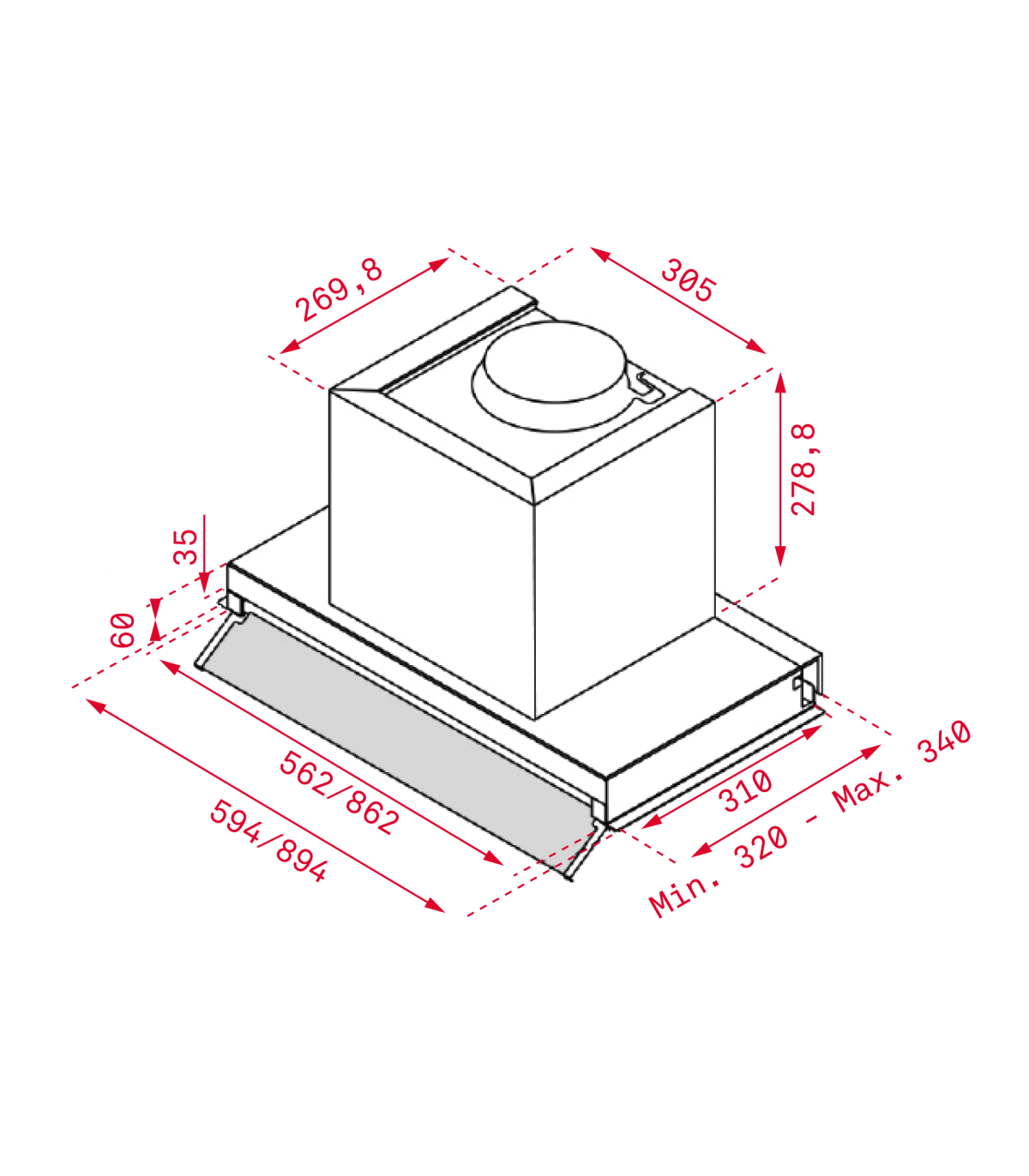 Klaasist väljatõmmatav sirm, mis kaitseb teie köögimööblit kuuma auru eest.Pöördnupp on uputatav mis sirmi sulgemisel jääb märkamatuks.