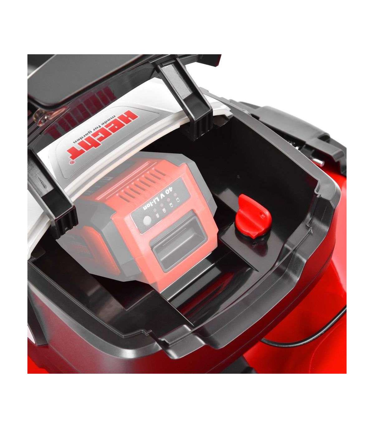 Aku muruniiduk töölaiusega 46 cm. Pinge 40 V. Aku maht 2,5 / 4 / 5 Ah, kogumiskorvi maht 60 l, isevedav. Patenteeritud rataste disain. AKU JA LAADIJA EI KUULU KOMPLEKTI.