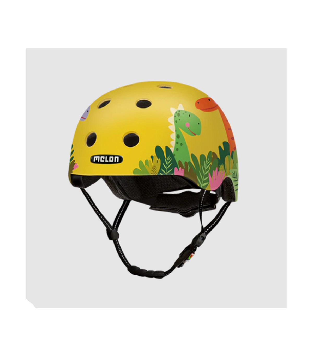 Sisenege maailmasse täis maagilisust ning seiklusi koos kiivriga Melon Big Bronto. See kollane lastekiiver armsate dinosaurustega on disainitud spetsiaalselt 3 kuni 7 aastastele lastele. Tänu oma pilkupüüdvale disainile toob see kiiver noortele ratturitele sära silma ning ühtlasi kaitseb neid nende seiklustel. Kiivriga tulevad kaasa kolmes erinevas paksuses pehmendused, mis lubavad kiivril kasvada koos lapsega. Fidlock magnetkinnitus võimaldab kiivrit avada ning kinnitada ühe käega ning MACS-süsteem 12 õhuavaga tagab piisava ventilatsiooni ka kuumadel päevadel. Spin Dial rullik kiivri tagaosas võimaldab reguleerida kiivri täpselt lapse peaga sobivaks.Tootja: Melon (Saksamaa).Täpsemalt:Suurus:XXS/S: 46-52 cm (3 kuni 7 aastastele)Kinnitus: Fidlock magnetkinnitusVentilatsioon: 12 õhuavaKaal: Alla 300 gReguleerimine: Spin Dial rullikkMaterjalid: polükarbonaadist väliskest, EPS sisekestLisavarustus: Valikuline talvesisuMeloni missioon on selge: tootja kiivreid, mis suurendavad sõidurõõmu. Neil on uskumus, et kiiver on rohkem kui turvavarustus: see on põhiline osa seiklusest, peegeldades ratturi iseloomu ning lisades rõõmu. Meloni tootevalik on hoolikalt disainitud, et kindlustada igas vanusegrupis inimestele turvalisus ning sõidurõõm. Kerge polükarbonaadist välimine kest koos eriti turvalise EPS sisuga hajutab kokkupõrkejõu tagades kaitse igal ajal. Lihtsasti kasutatav magnetkinnitus lisab mugavust, mistõttu saab seda muretult ning turvaliselt pähe panna. Integreeritud CoolMax pehmendus kiivri sees on mugav ning hügieeniline ning kannatavad 30-kraadist masinpesu.Meloni kiivrid – inimestele, kes soovivad nautida elu ning lõbutseda!