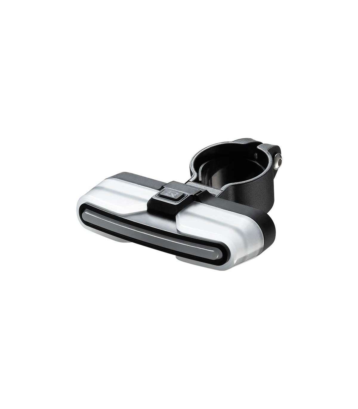 The light offers five operating modes - Single Flash (about 30 h), Double Flash (25 h), Breathing Flash (17 h), Water Flash (20 h) and Always On (9.5 h). The handlebar-mounted remote control allows you to remotely change modes and turn on the turn signals (left/right). Its operating range is about 1.5 meters, and pairing is done with a single button.
