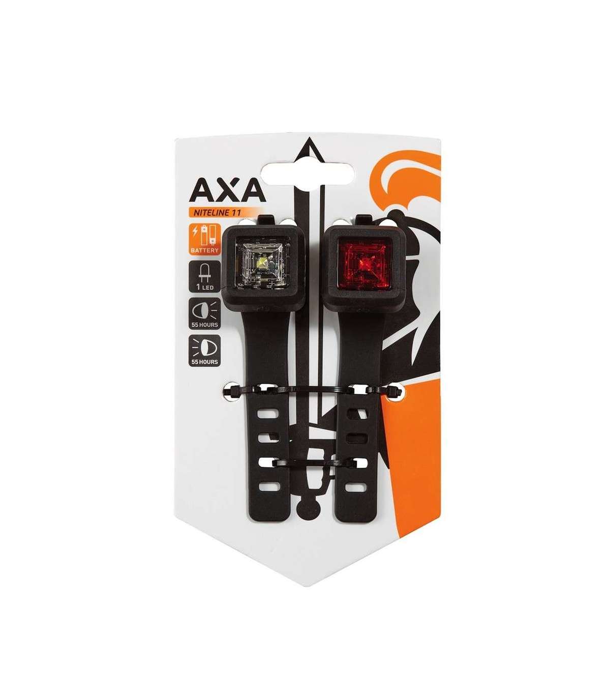 AXA Niteline 11 tuled on väikesed ja kompaktsed, nähtavad 150 m kauguselt. Mõlemal tulel on 1 LED-pirn, põlemise aeg kuni 55 tundi ja neil on 3 valgustusrežiimi. Sobivad CR2032 tüüpi patareid. Kummist rihmadega on tulesid kerge paigaldada.