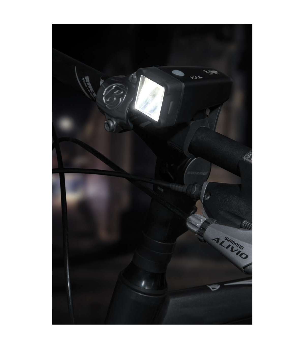 AXA Niteline T4-R tuledekomplekt on USB-laetav ning kummist rihmadega on kerge paigaldada igale rattale.
