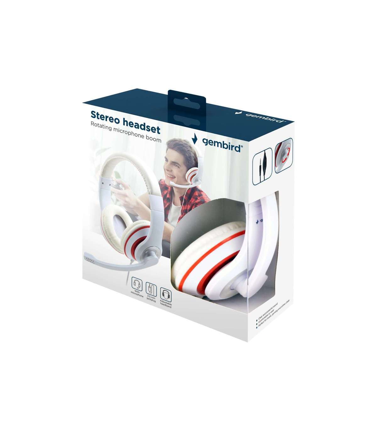 Gembird Stereo Headset MHS 03 WTRD 3.5 mm White with Red Ring Headset