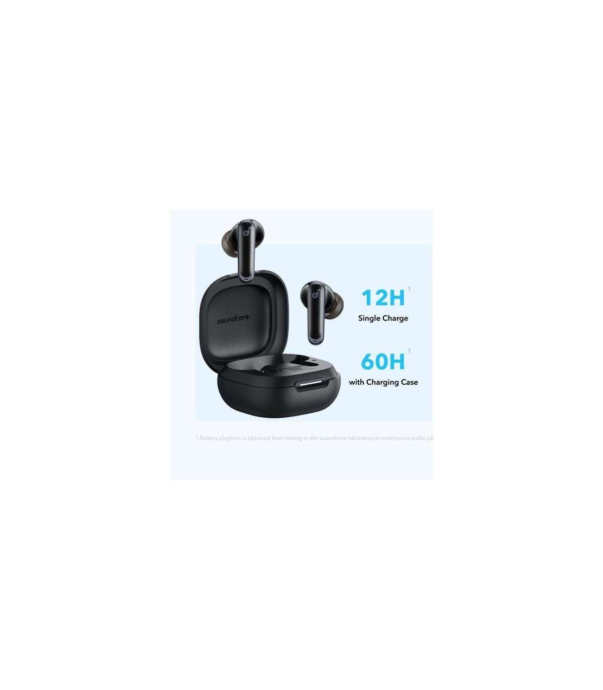 - 2-in-1 charging case and phone stand; Multipoint connection; 6 mics and an AI algorithm enable crystal clear calls; Thumping beats powered by 11mm composite drivers; Battery Life: 12 hours single charge and 60 hours with charging case; Wireless charging