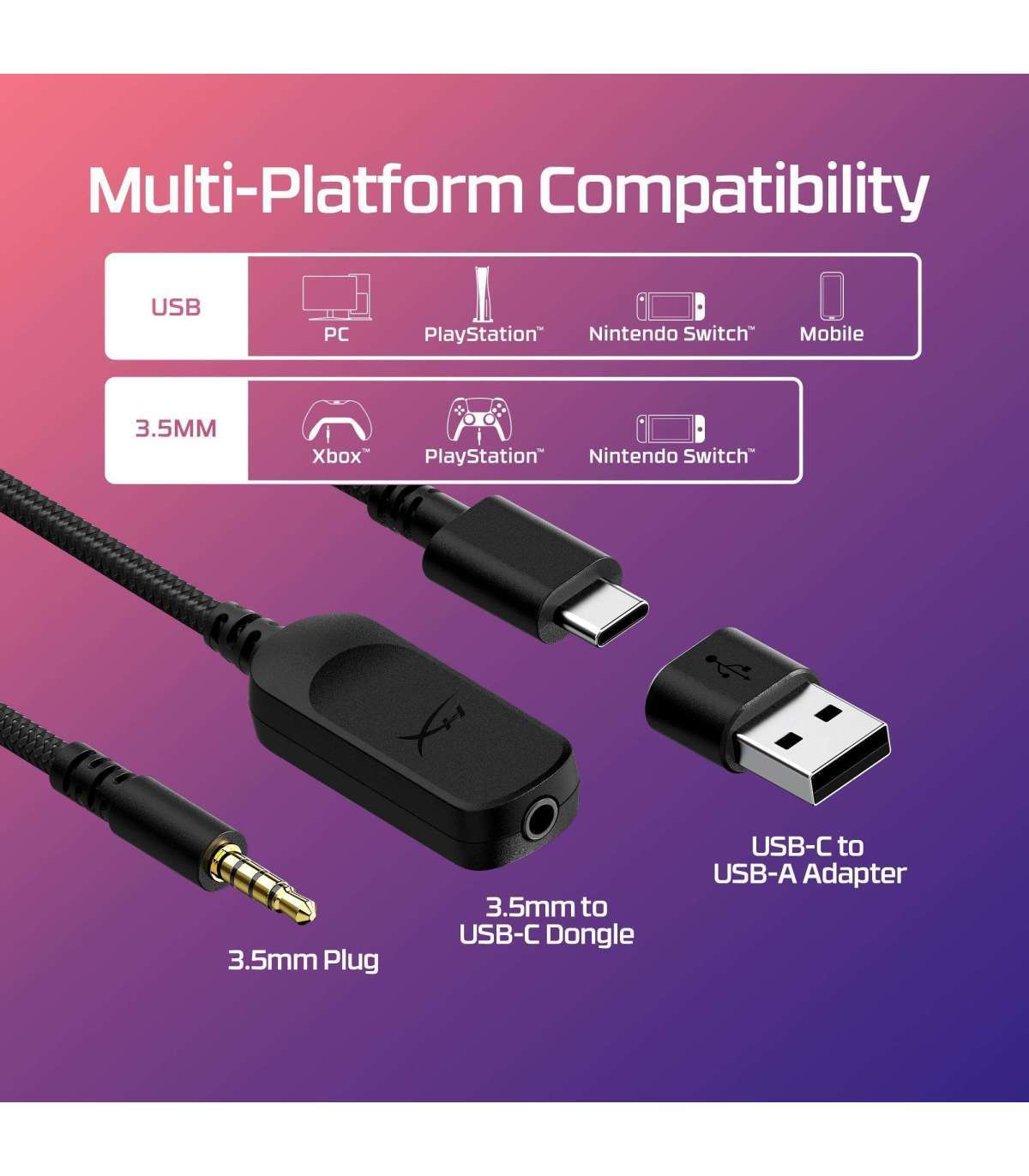- The Cloud III is compatible with PC, PS5, PS4, Xbox Series X/S, Xbox One, Nintendo Switch, Mac and mobile devices. 3.5mm, USB-A, and USB-C connectors are included for maximum compatibility, no matter how you game.