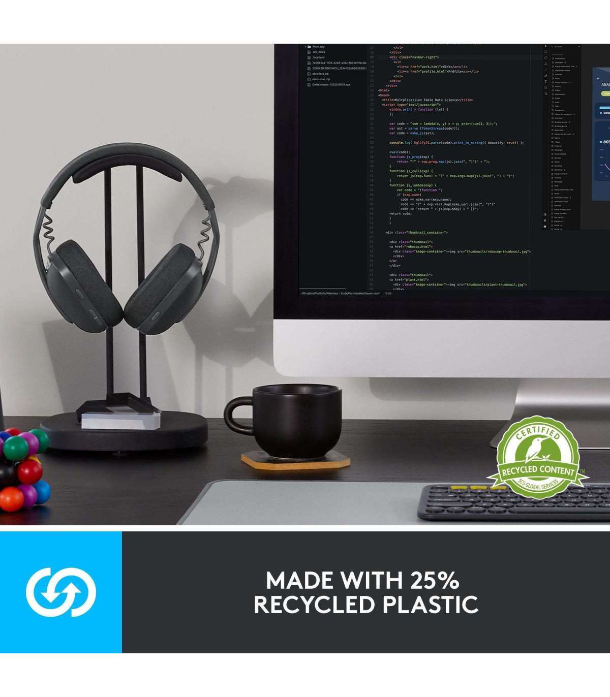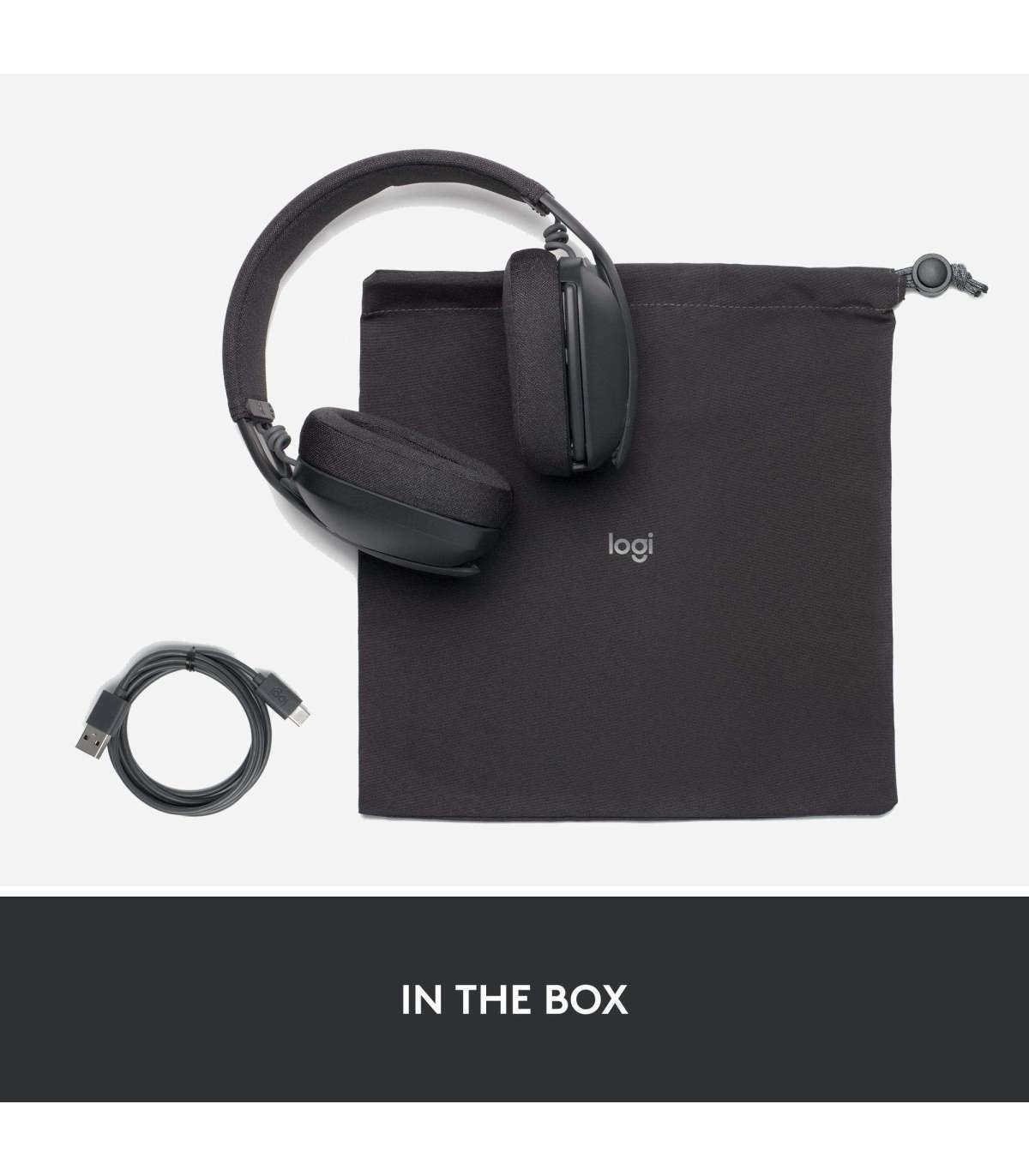 (1) Wireless range may vary based on environmental and computing conditions (2) Battery life may vary based on users and computing conditions (3) Images are illustrative and may vary from actual product. (4) The Logi Tune app currently supports headset voice prompts in the following languages: English, French, German, Italian, Spanish, and Portuguese (5) Excludes accessories and packaging
