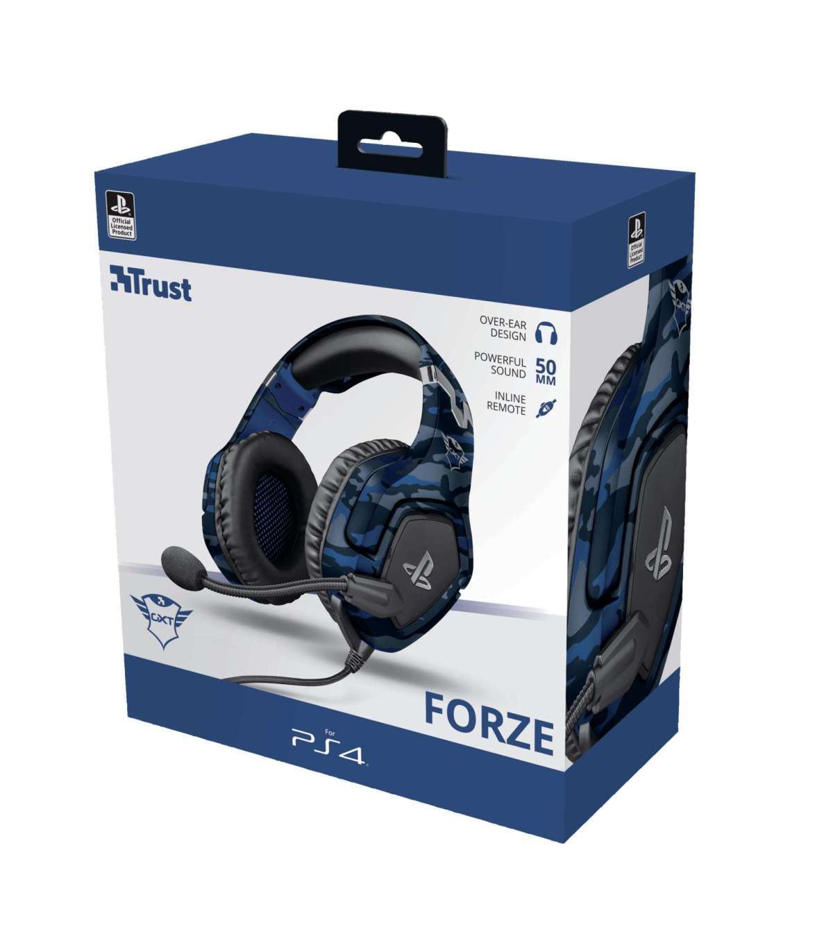 - Trust GXT 488 Forze PS4. Product type: Headset. Connectivity technology: Wired. Recommended usage: Gaming. Headphone frequency: 20 - 20000 Hz. Cable length: 1.2 m. Weight: 376 g. Product colour: Black, Blue
