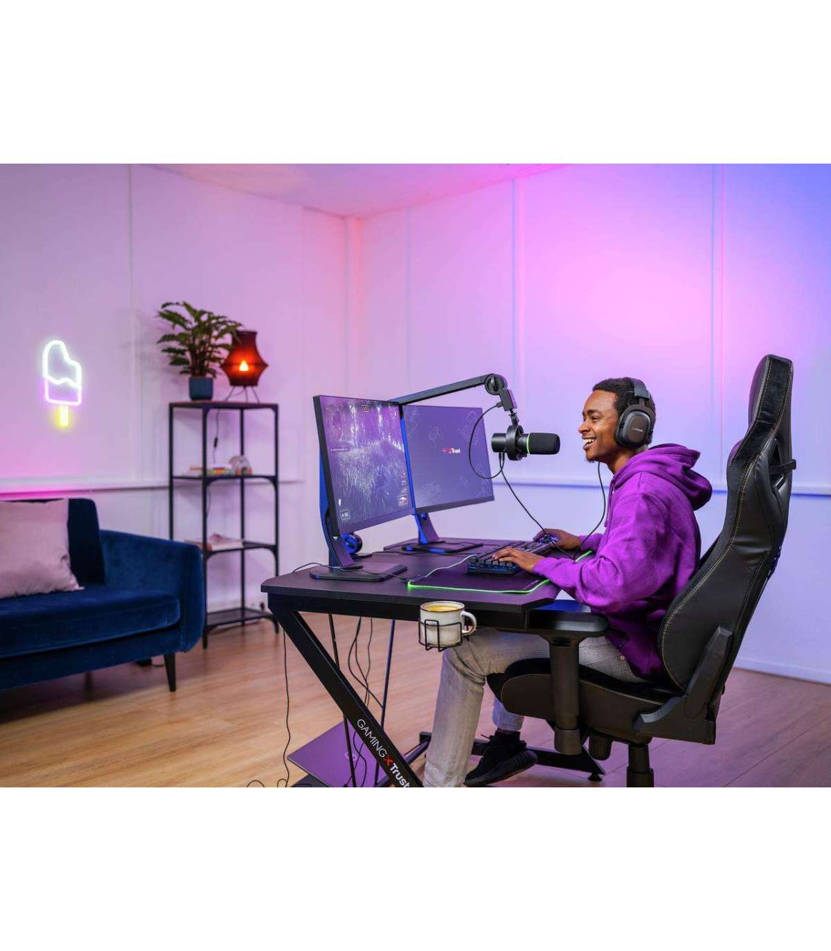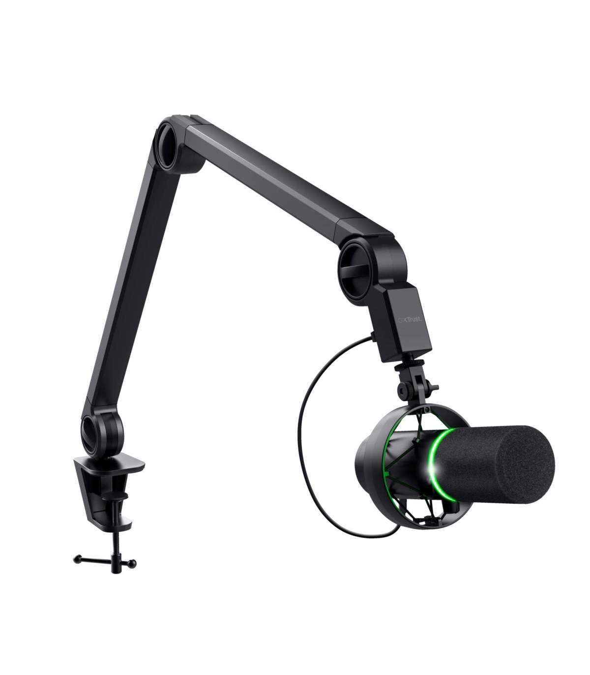 Transform your desk into a content studio. With a cardioid audio pattern, a shock mount, zero-latency monitoring and an aluminium boom arm included, the Trust Onyx Professional Microphone delivers everything you need for studio-quality audio recording. Plus, the adjustable LED lighting ring with six colours will bring your quality recordings to life.