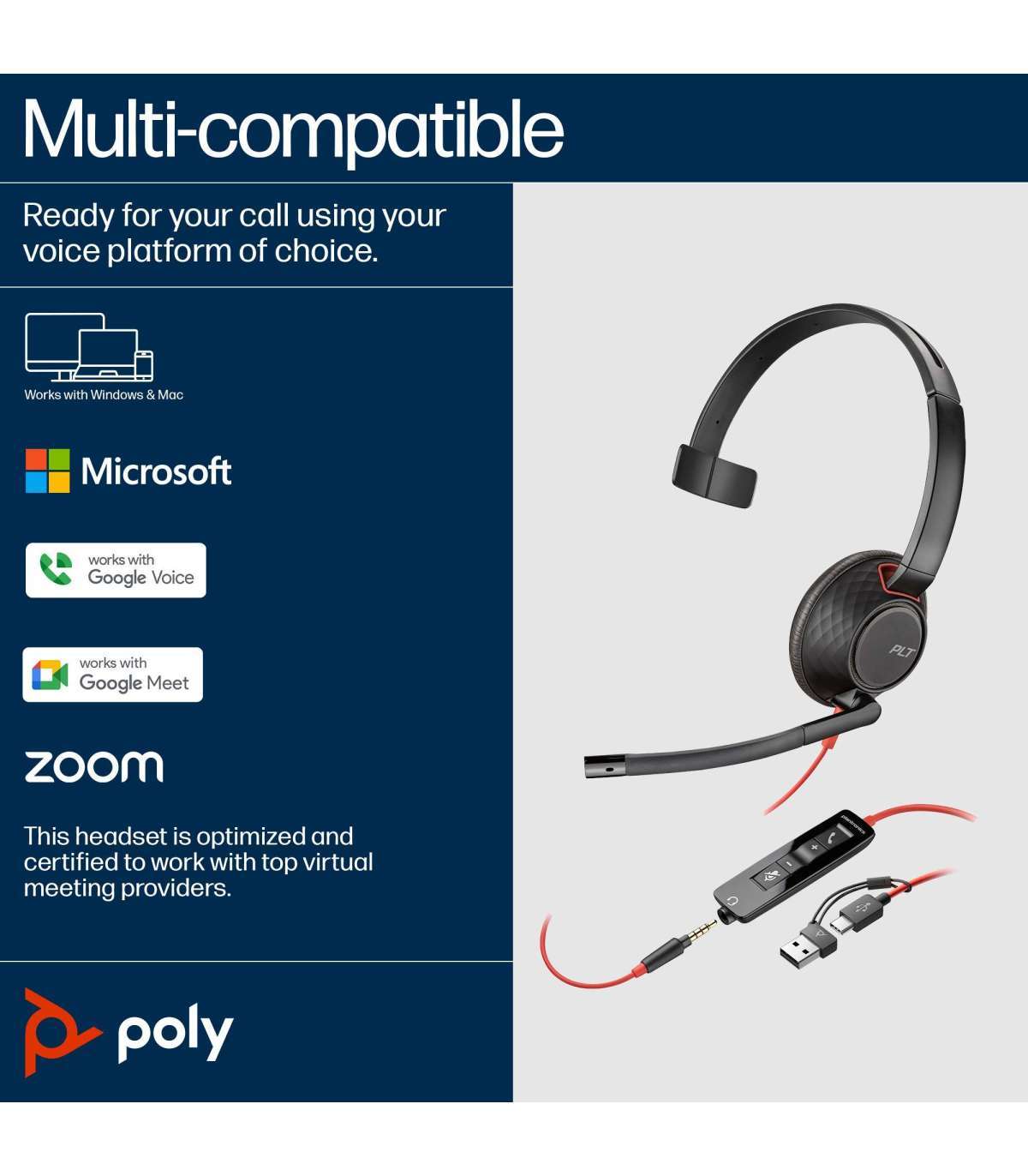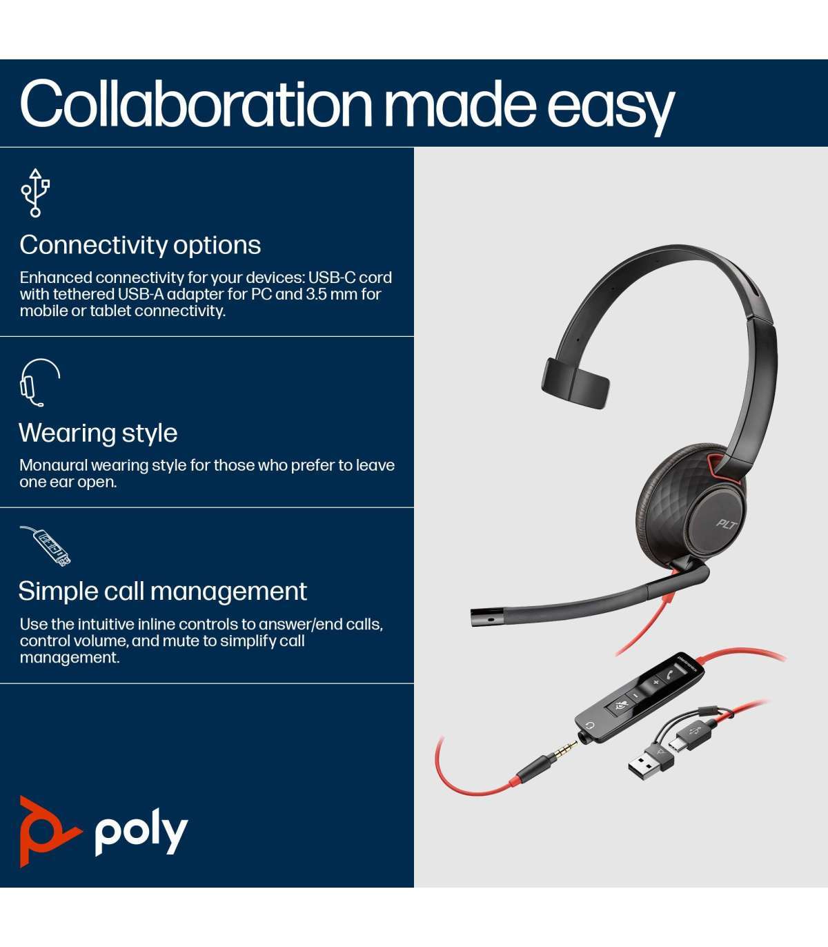 8X230AA HP Poly Blackwire 5210 Monaural USB-A Headset (207577-201)