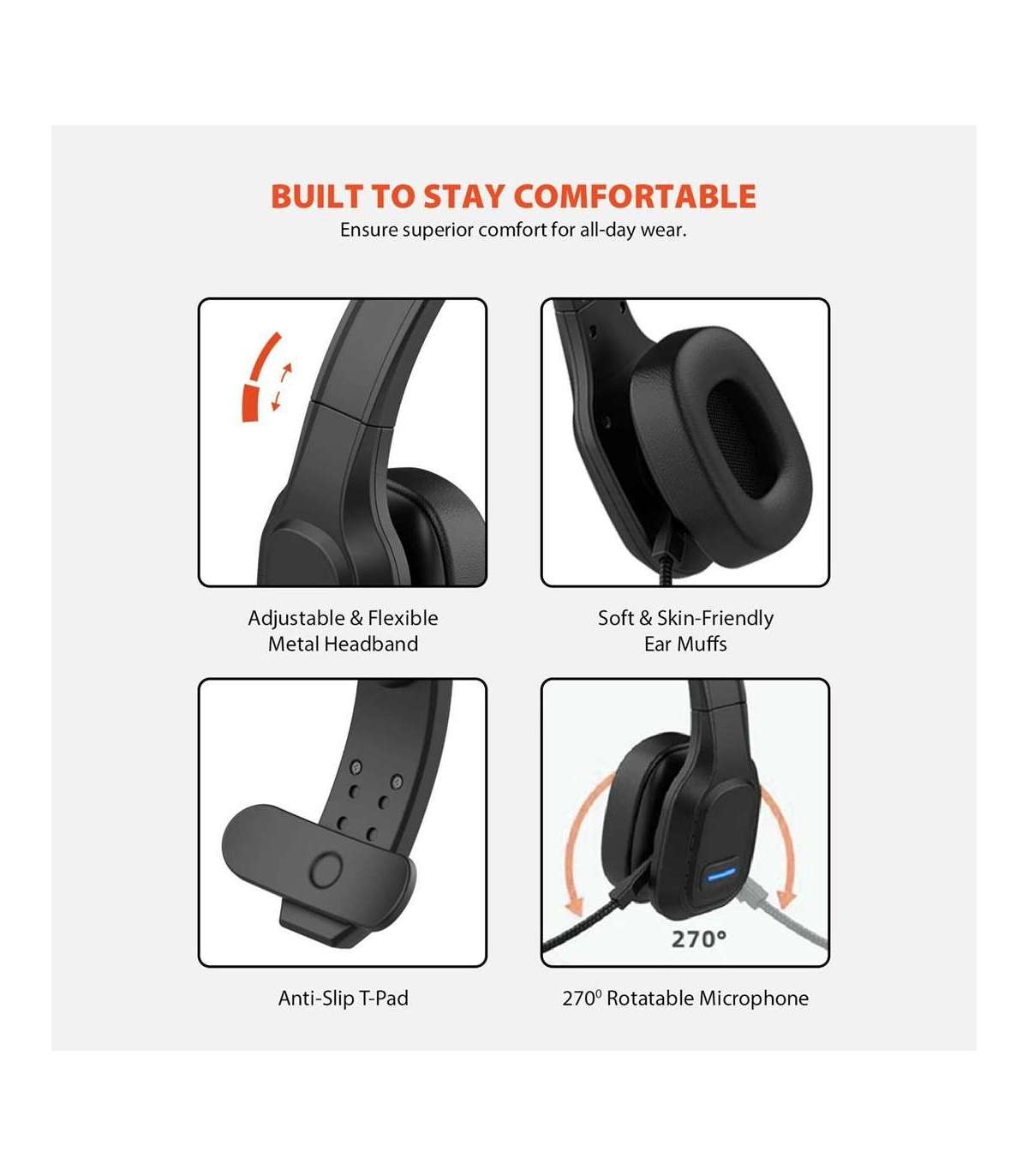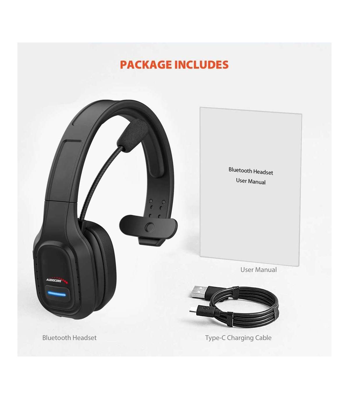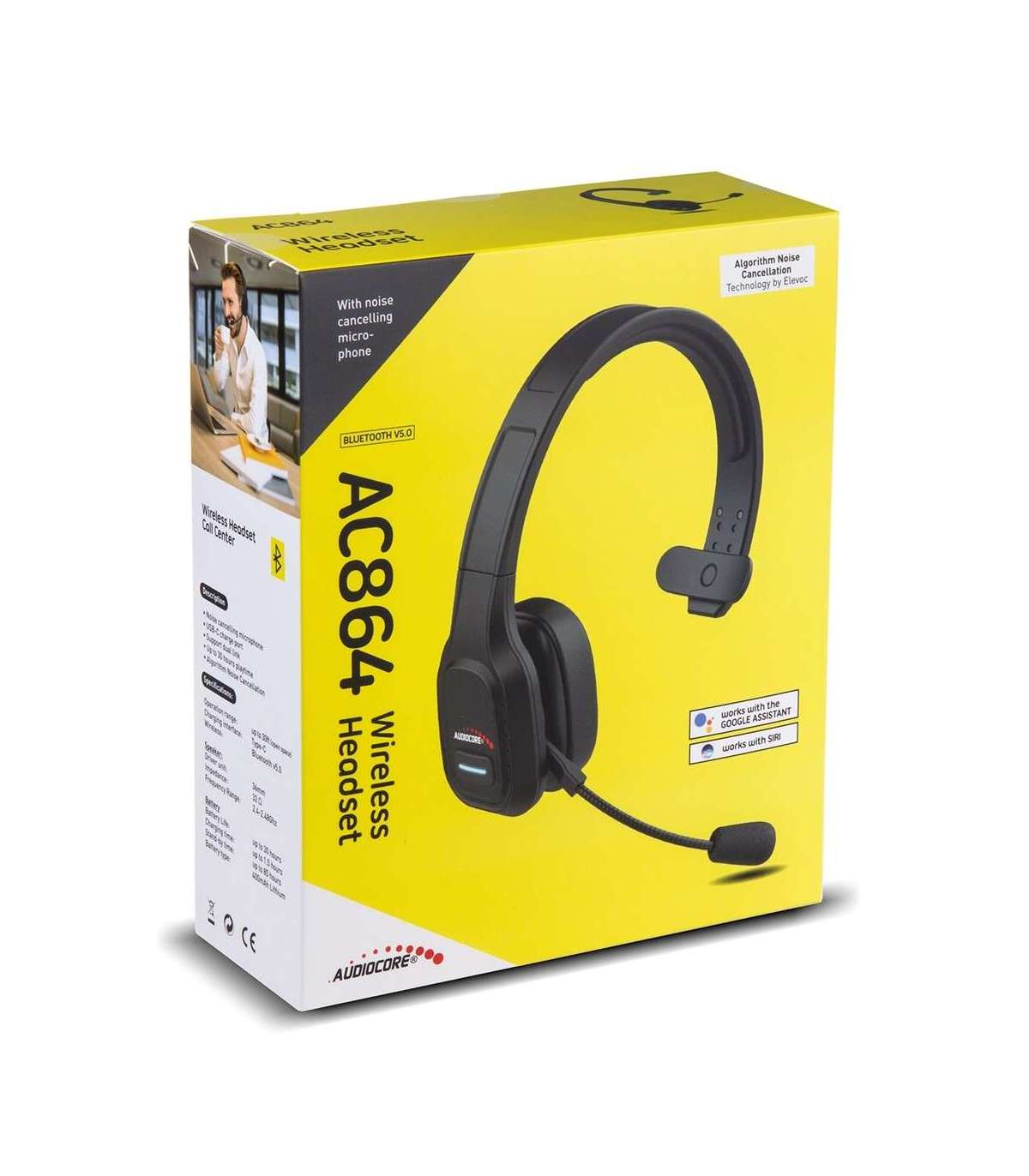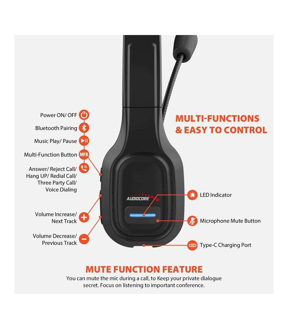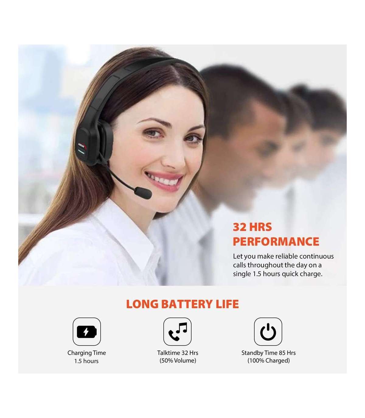 Audiocore 74452 Bluetooth Headset Headphone Noise Reuction Microphone Call CenterGoogle Siri Office Wireless