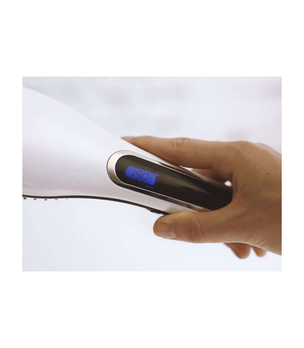 Ioontehnoloogiaga varustatud keraamilise kattega siluv pintsel, mis silub juukseid ilma särisema. Suurema mugavuse tagamiseks kaetud harjaste ots. LCD-ekraanil kuvatav temperatuur on reguleeritav 80°C kuni 230°C sammuga 5°C. 360° pöörlev kaabel.
