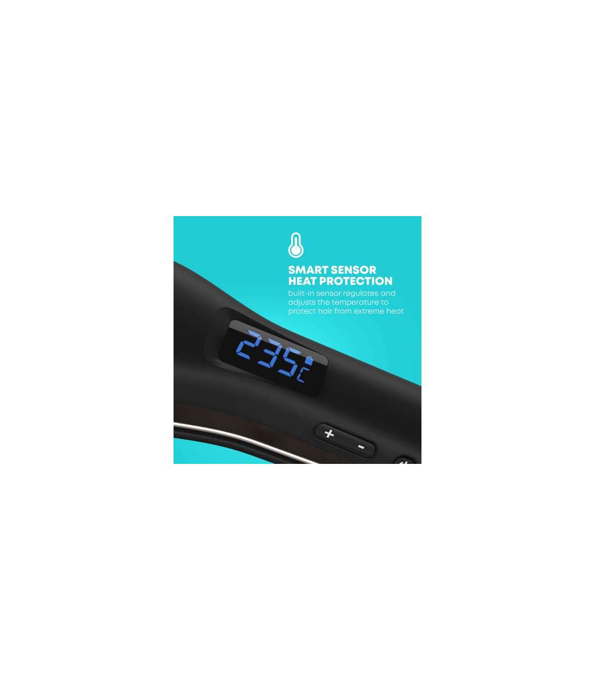 Nutikas anduri kuumkaitsetehnoloogia reguleerib ja reguleerib temperatuuri nii, et juukseid kahjustatakse minimaalselt