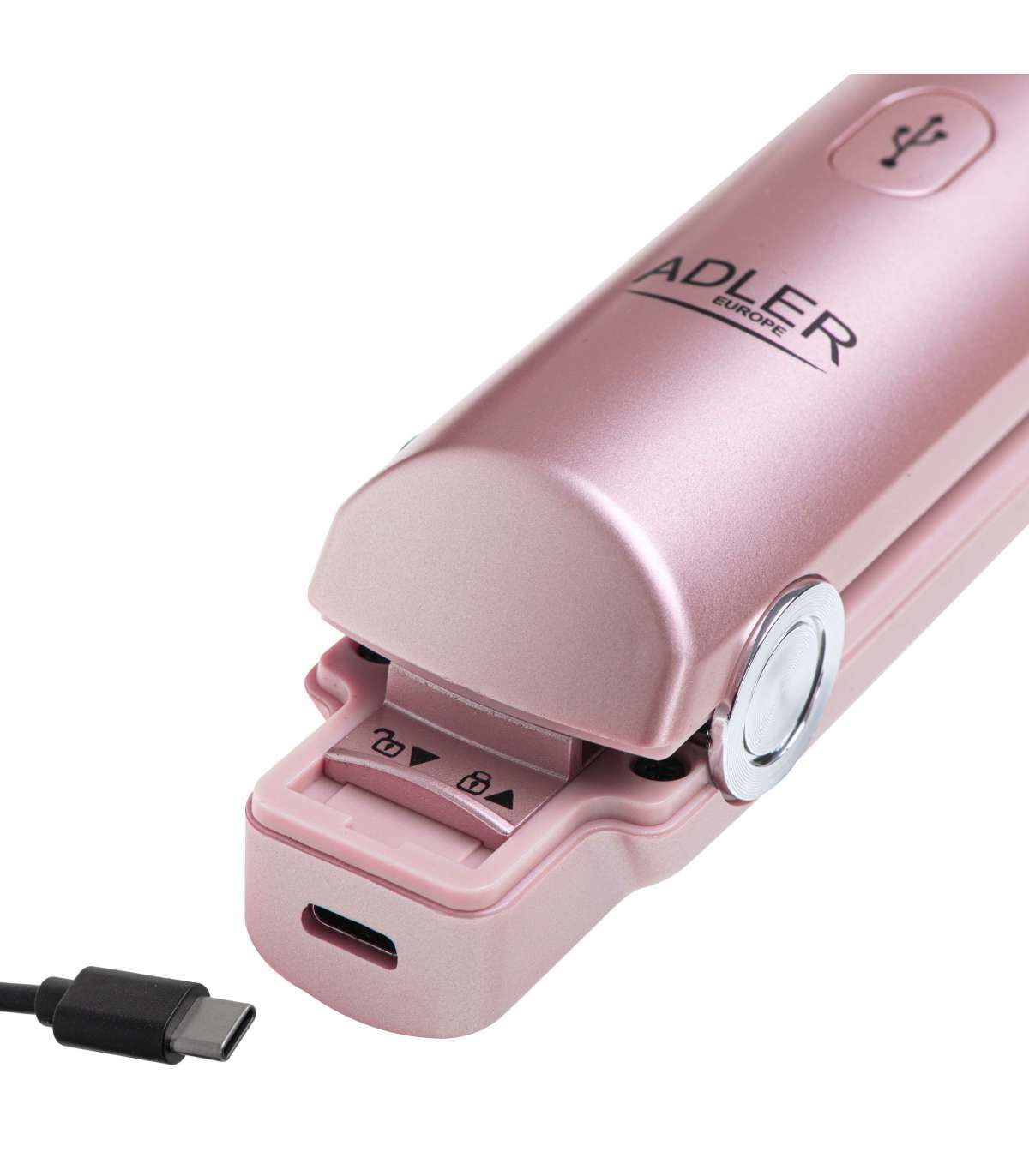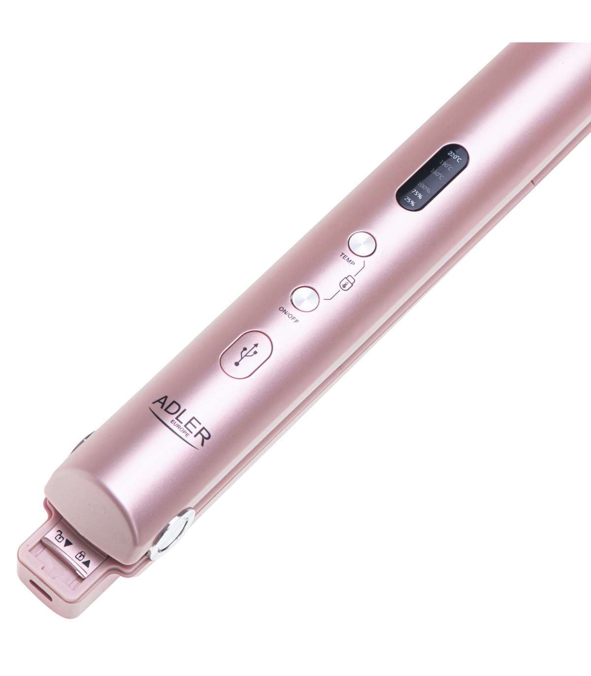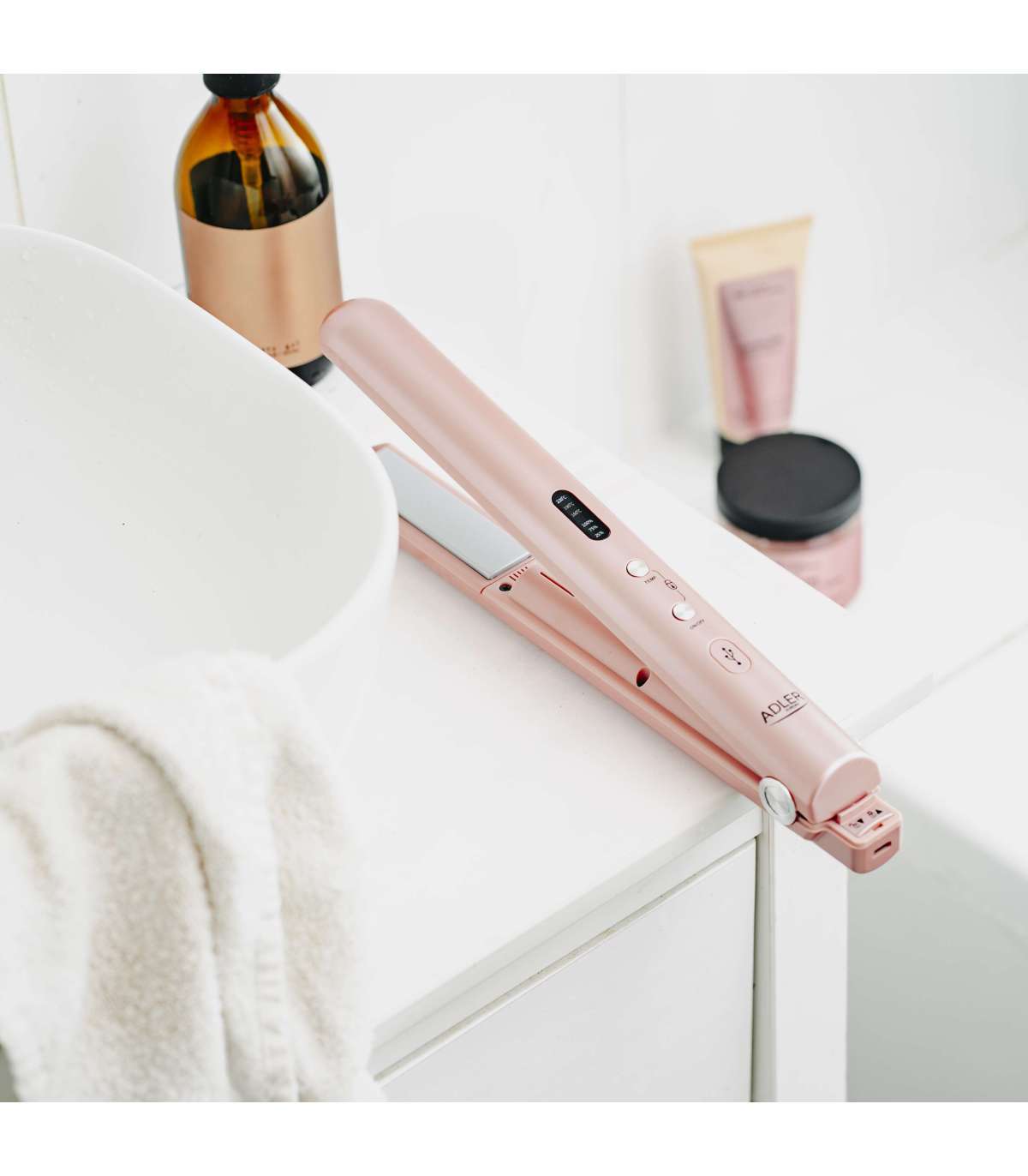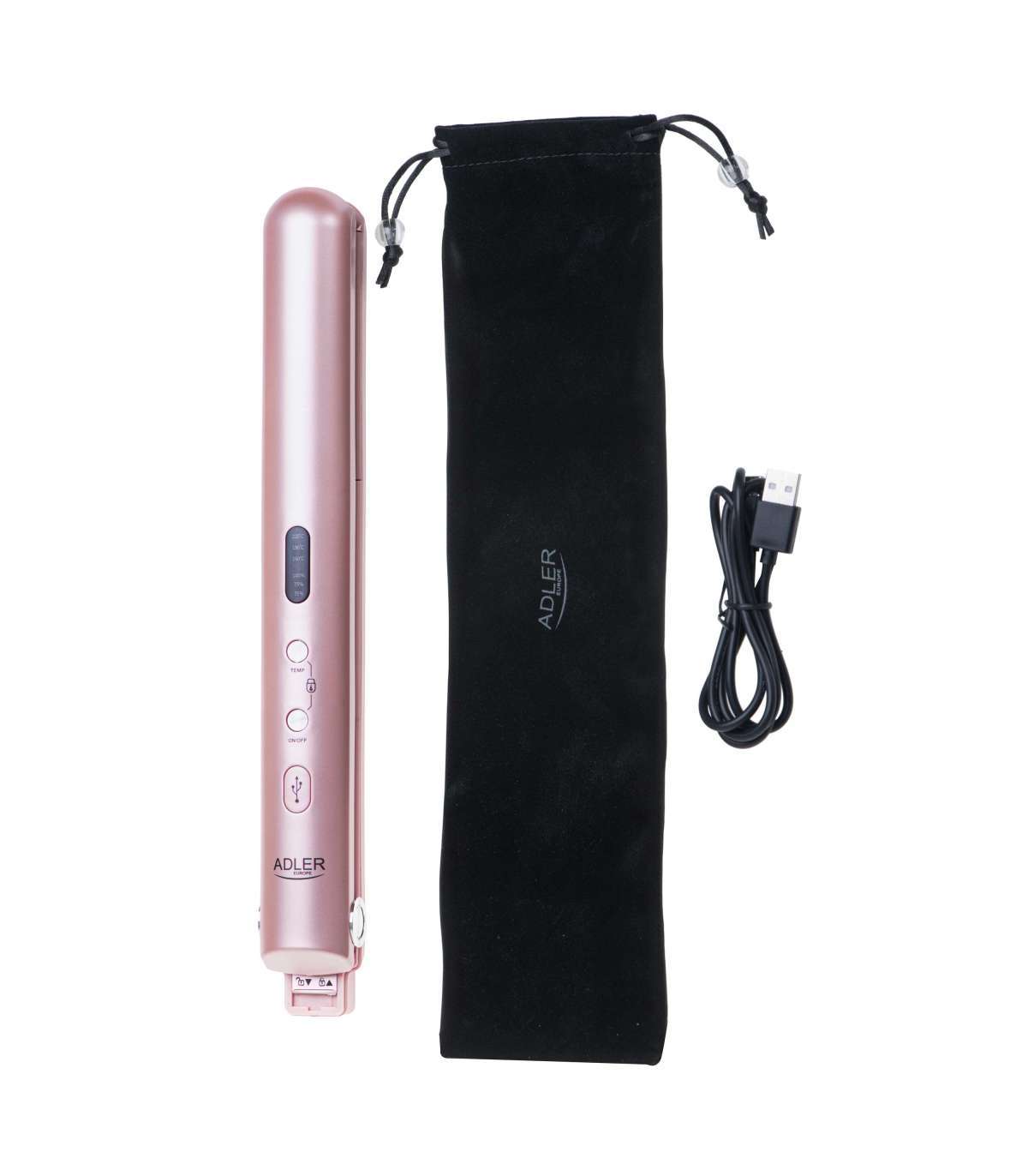 Adler Cordless Hair Straightener | AD 2327 | Ceramic heating system | Display LED | Temperature (min) 160 °C | Temperature (max) 220 °C | Pink