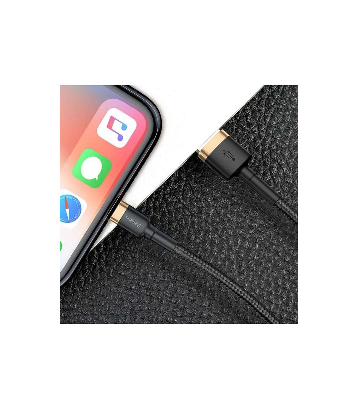 KThe USB Lightning cable allows for a 1.5 A charge, 480 Mbps data transfer, and is also made of robust nylon, resistant to mechanical damage and breakage.