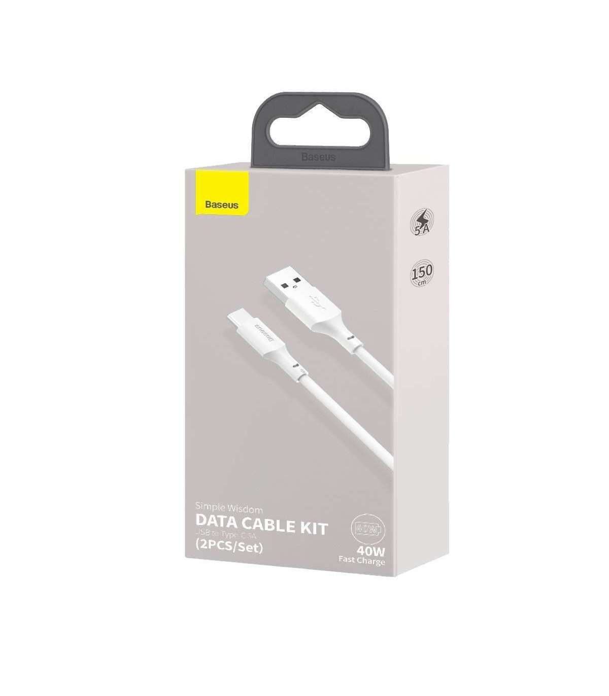 Baseus Simple Wisdom Data Cable Kit USB to Type-C 5A (2PCS/Set)1.5m White