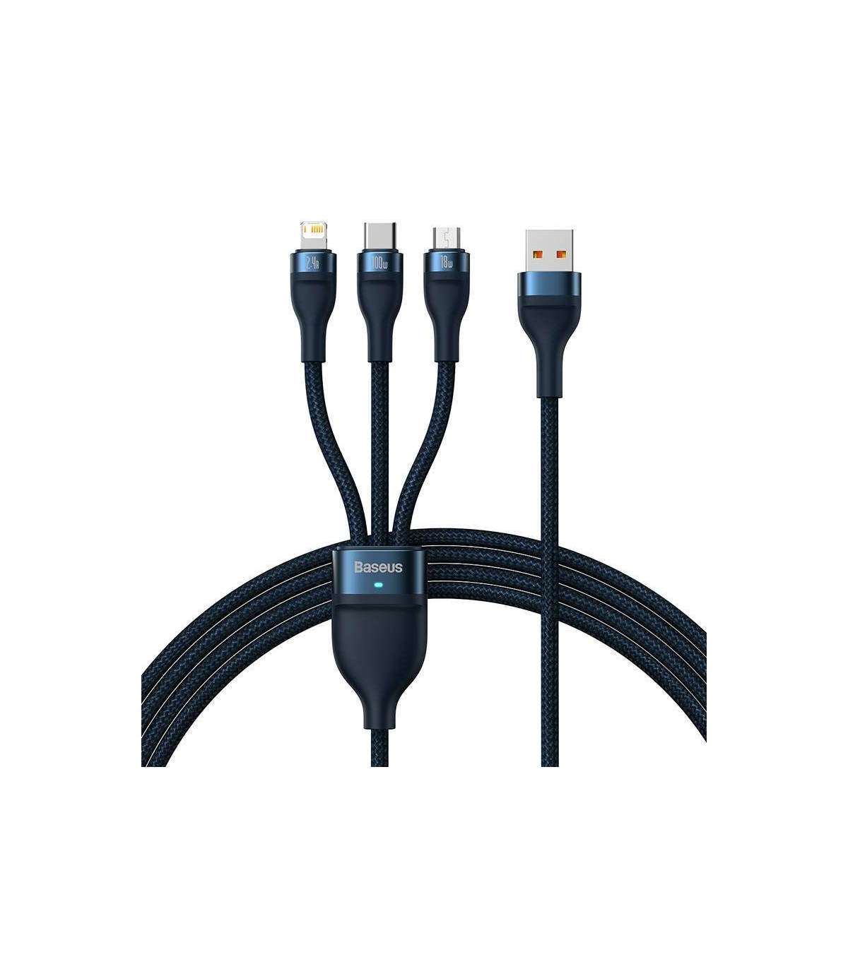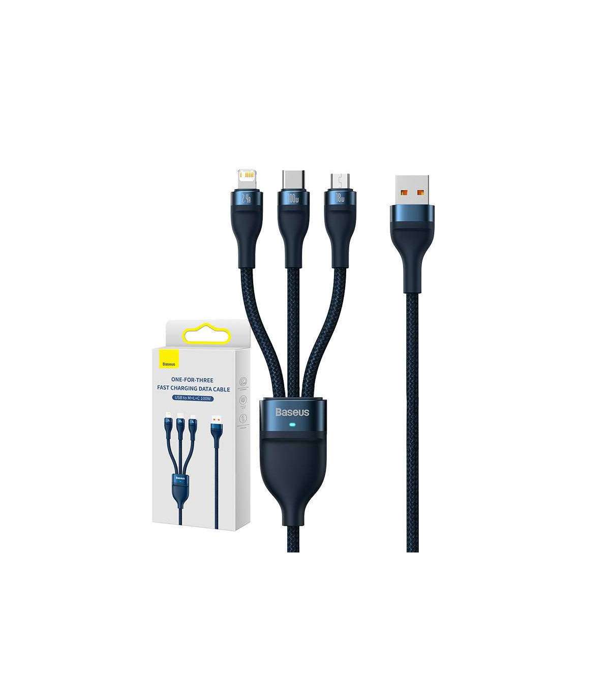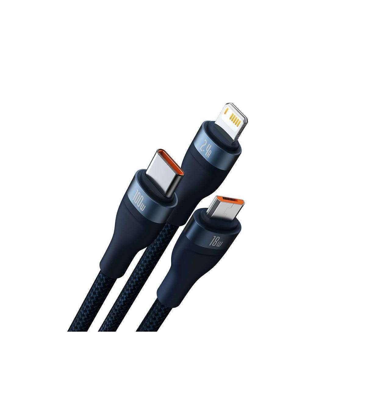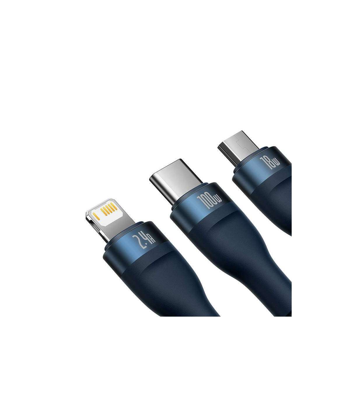 3in1 USB cable Baseus Flash Series, USB-C + micro USB + Lightning, 100W, 1.2m (blue)