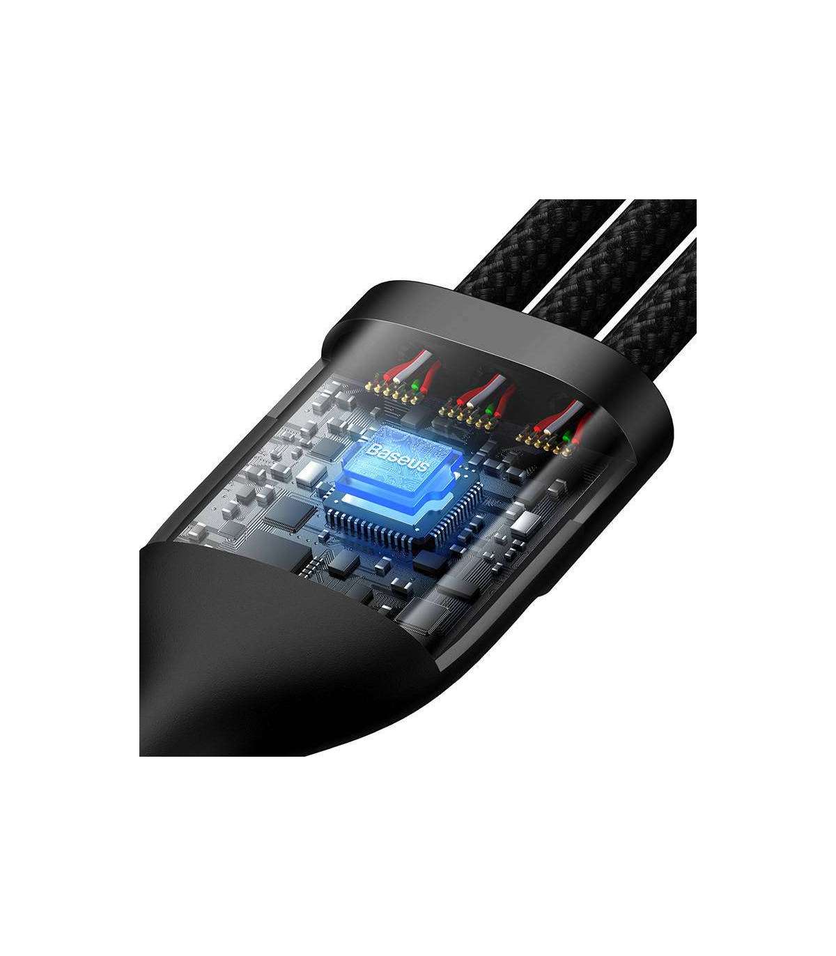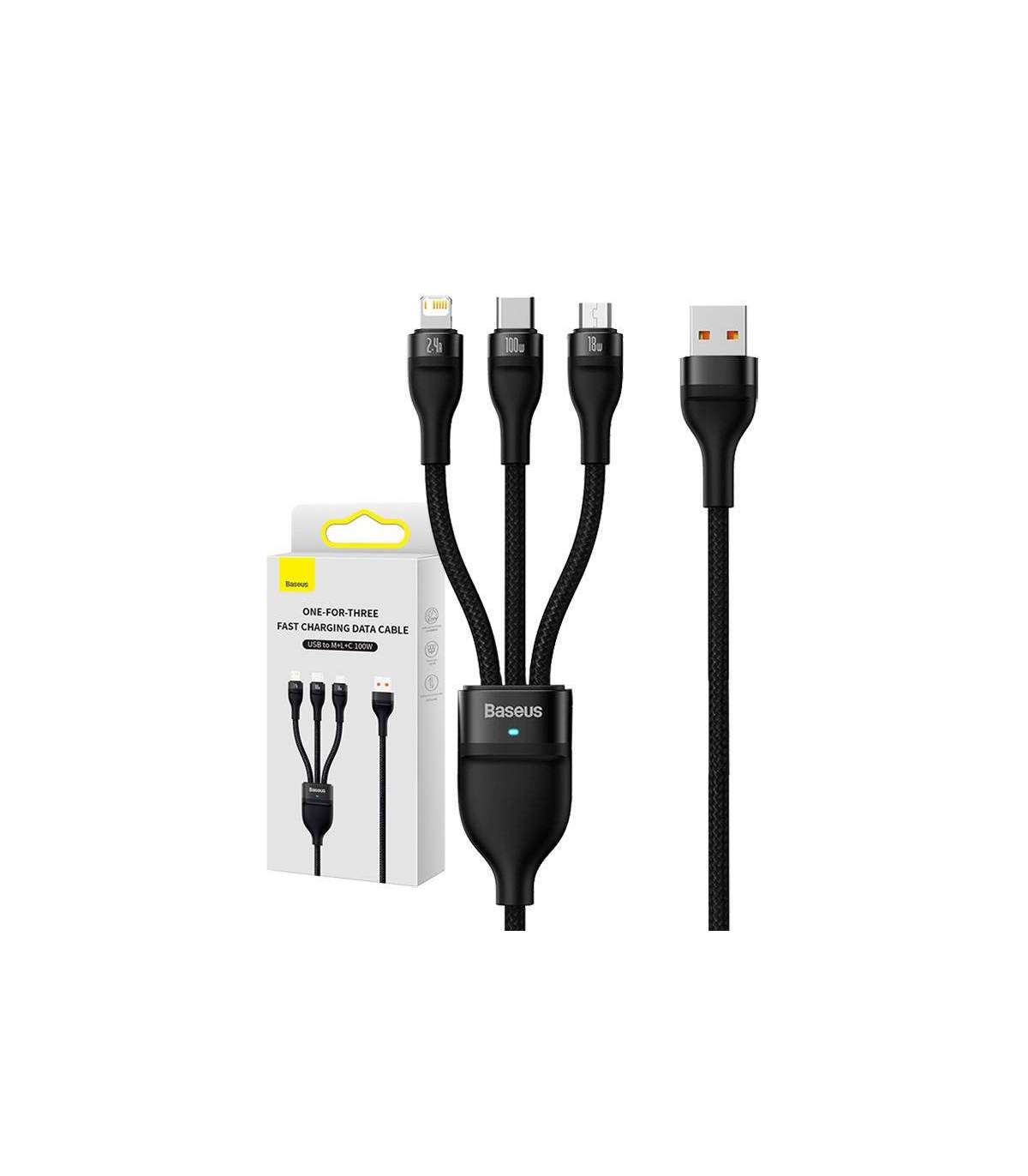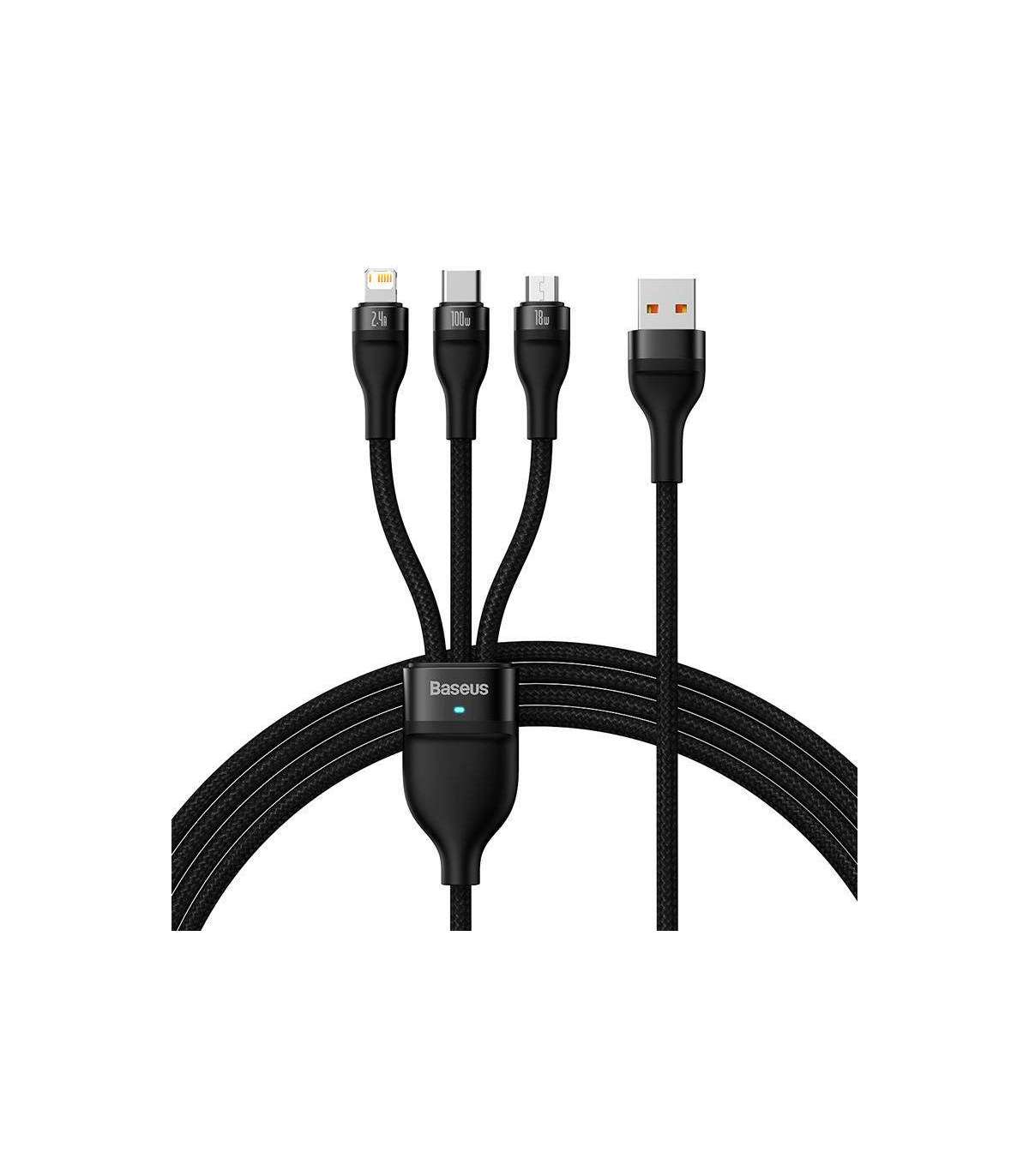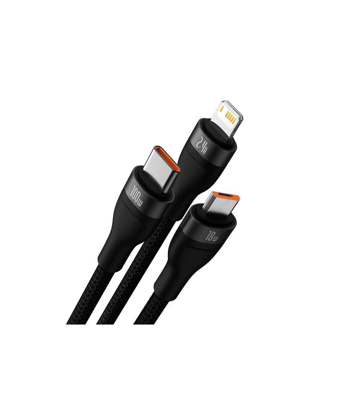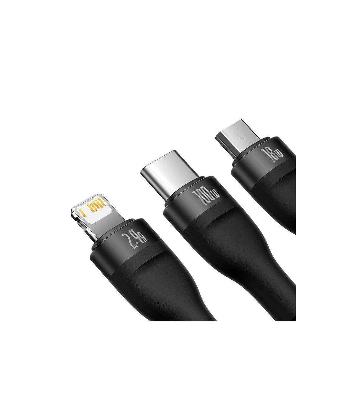 3in1 USB cable Baseus Flash Series, USB-C + micro USB + Lightning, 100W, 1.2m (black)