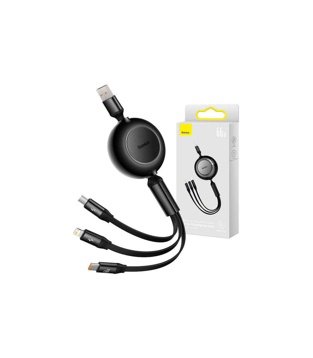Baseus Bright Mirror 3, USB 3-in-1 cable for micro USB / USB-C / Lightning 66W / 2A 1.1m (Black)